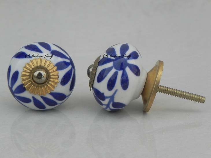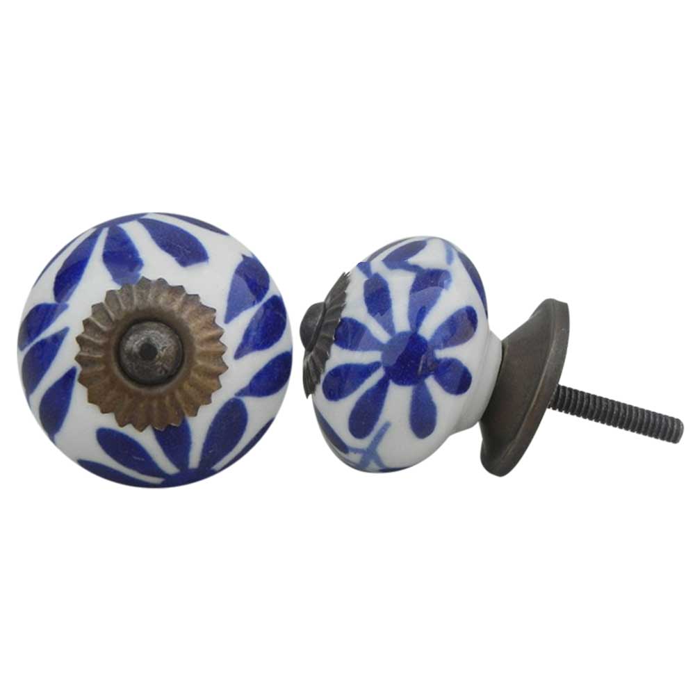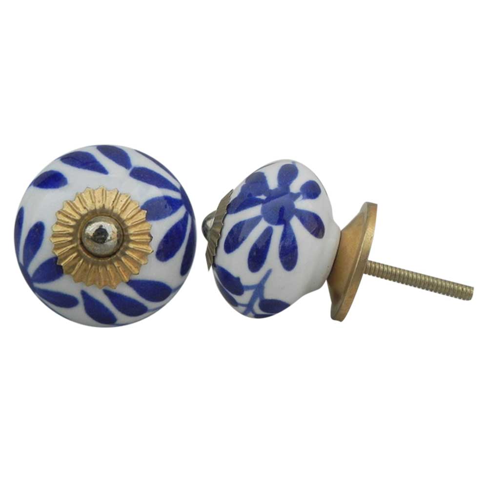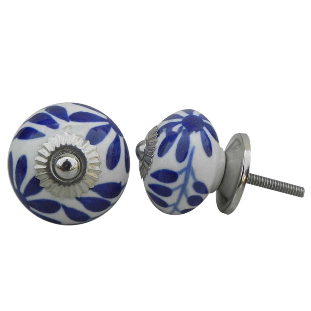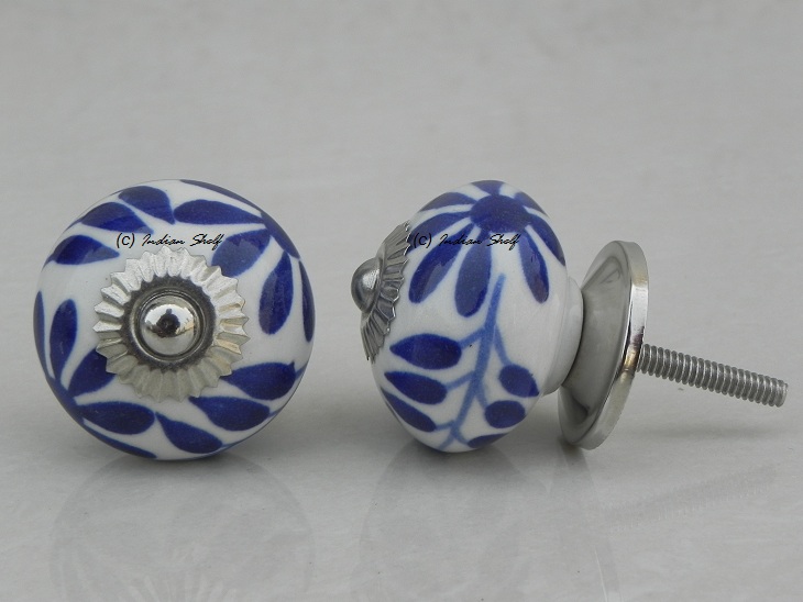 Blue Floral Leaf Ceramic Knob. Ideal for kitchen cabinets, kitchen drawers, dining room, bed room, chest drawers, dressing tables, almirah
