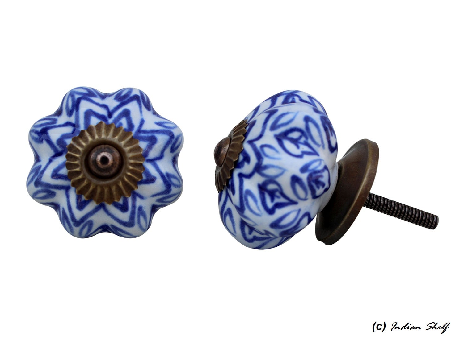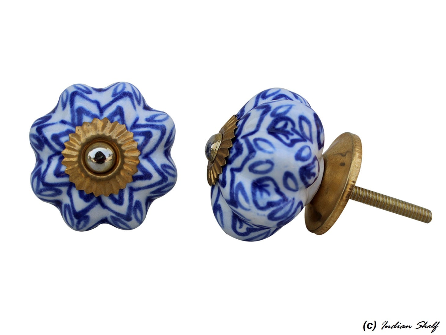 Elevate your furniture with the Blue Floral Melon Ceramic Knob. This charming knob showcases a stunning blue floral design on a melon-shaped ceramic body, bringing both style and practicality to your cabinets, drawers, or dressers. It's an excellent choice for enhancing your home décor, merging classic design with exceptional craftsmanship.