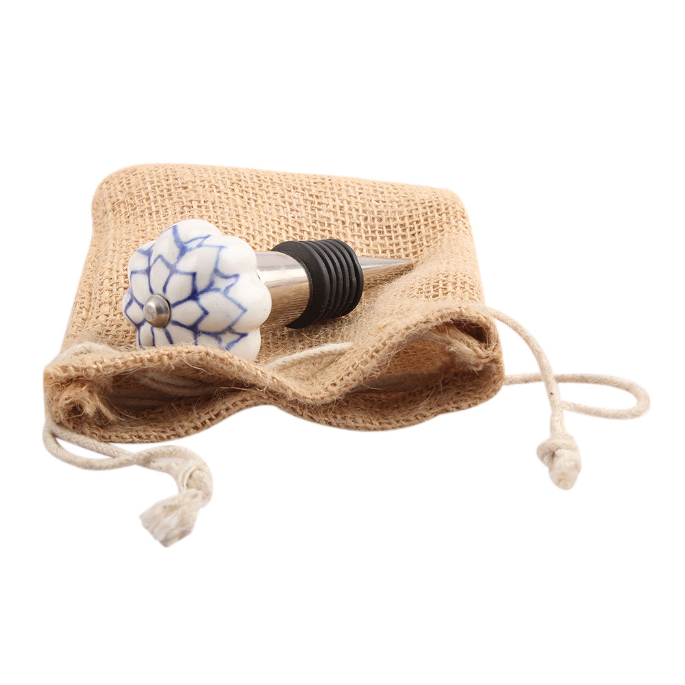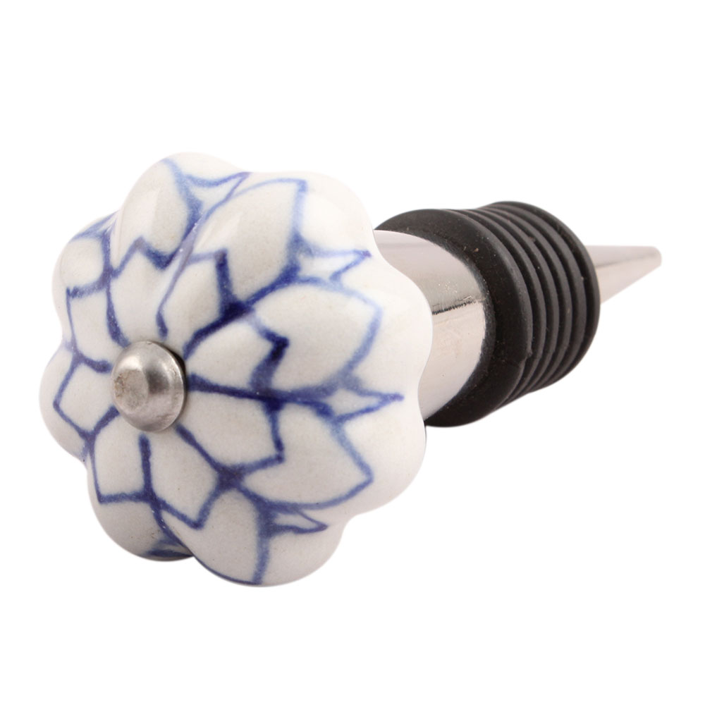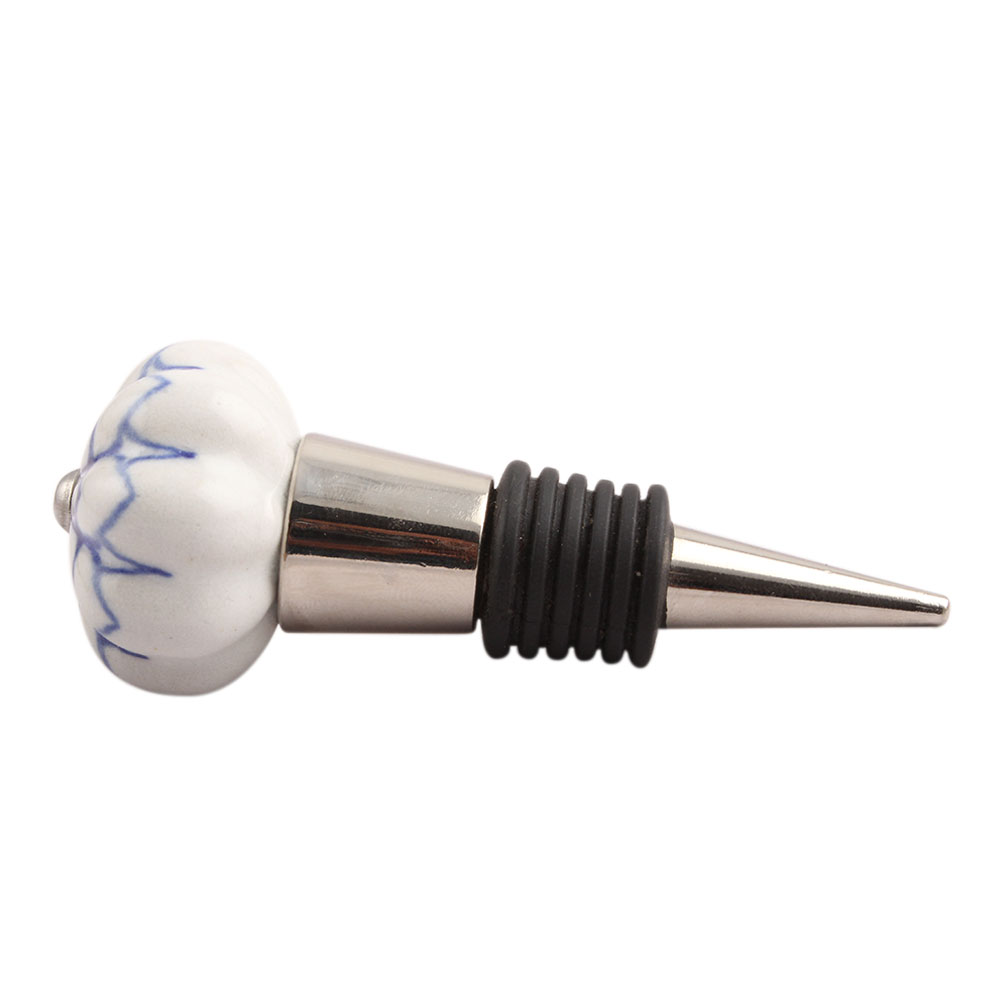 Blue Flower Medium Ceramic Wine Stopper.zinc alloy wine bottle stopper.