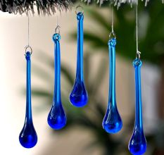 Blue Glass Chandelier Drop Ornaments - Christmas Tree Ornaments - Pack of 20