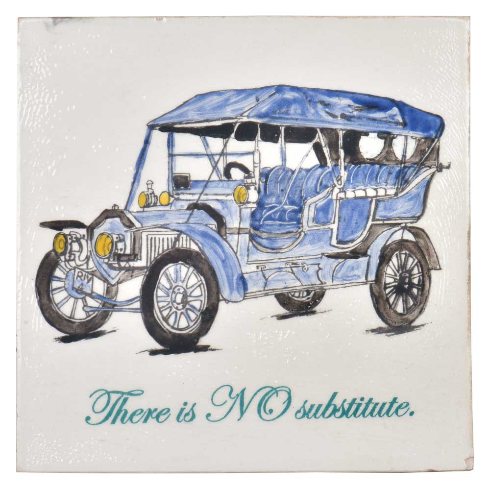 Made of white ceramic Display your favourite photos, images of an blue old vintage car along with a tagline that says " There is no substitute" on this vibrant ceramic tile. You can use your custom tile as a trivet or to upgrade your home décor. Great for holiday, wedding, and office gifts.