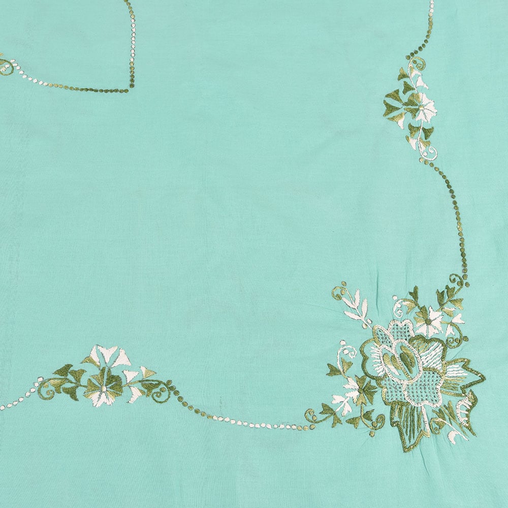 • Blue Handmade Double Bed Sheet Linen with Floral Design Beautiful Decorative Stylish