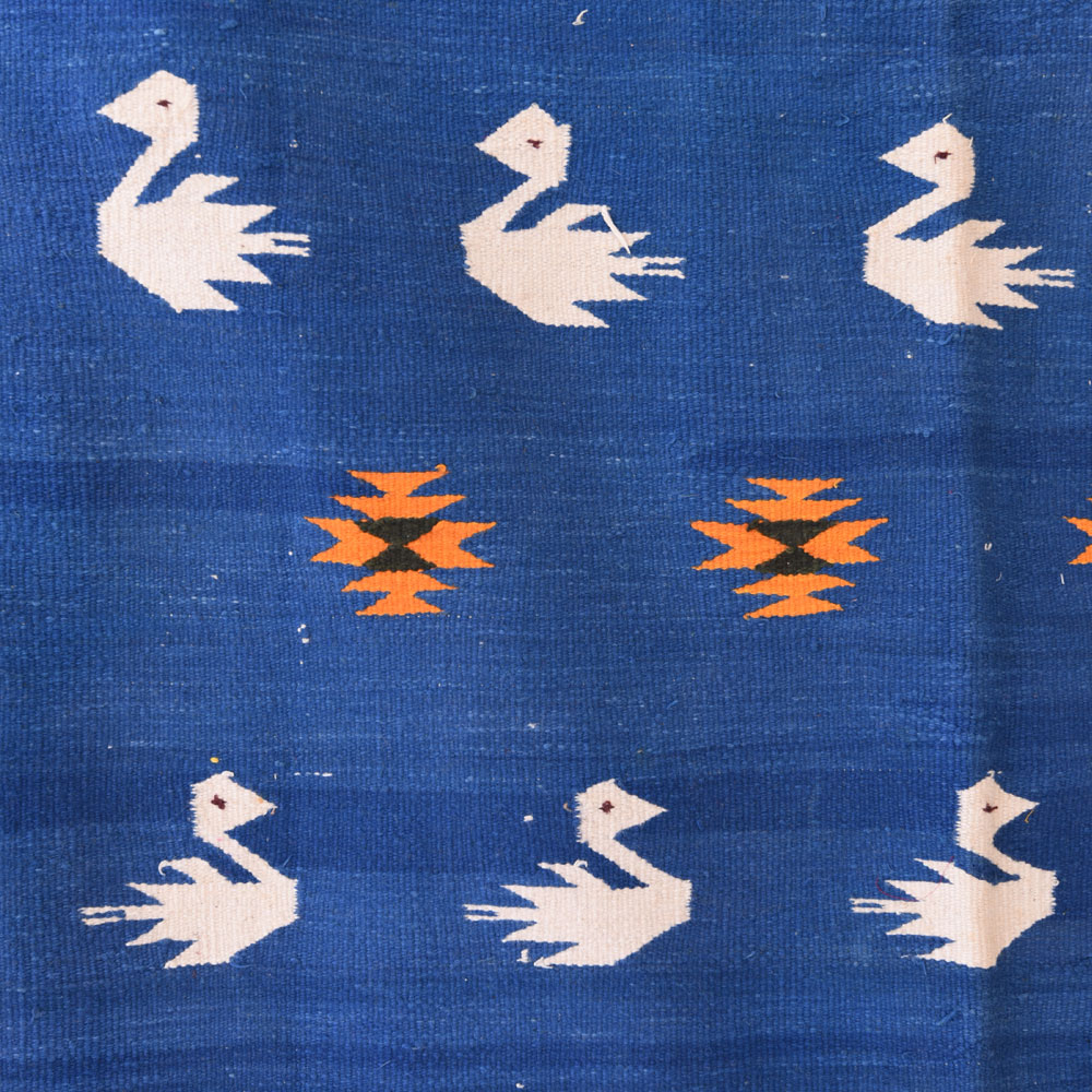 • Blue Handmade Durry Floral Duck Design
