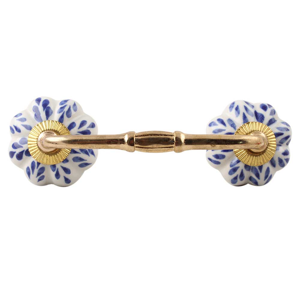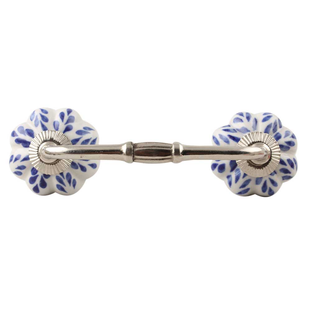 Blue Leaf Ceramic Melon Bridge Handle. Ideal for Drawer, Dresser, Cabinet, Wardrobe, Cupboard and Almirah etc.