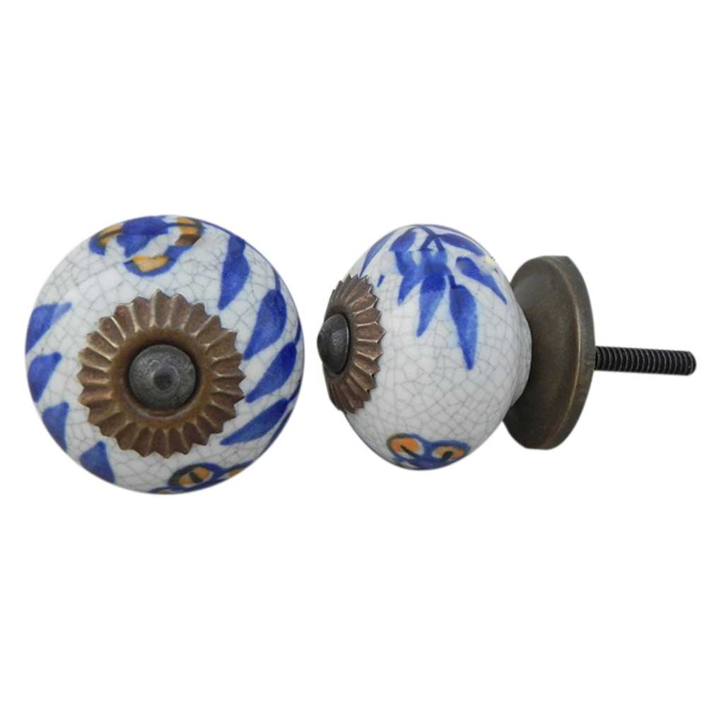 Blue Leaf Crackle Ceramic Cabinet Knob Online