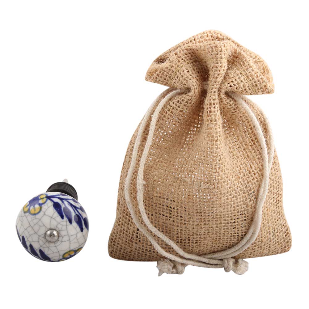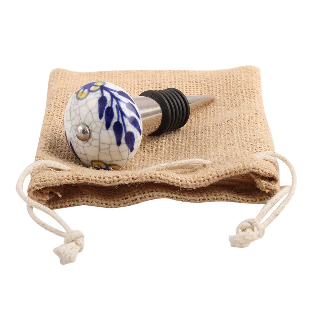 Blue Leaf Crackle Ceramic Wine Stopper.zinc alloy wine bottle stopper with attractive Jute Bag Packaging.