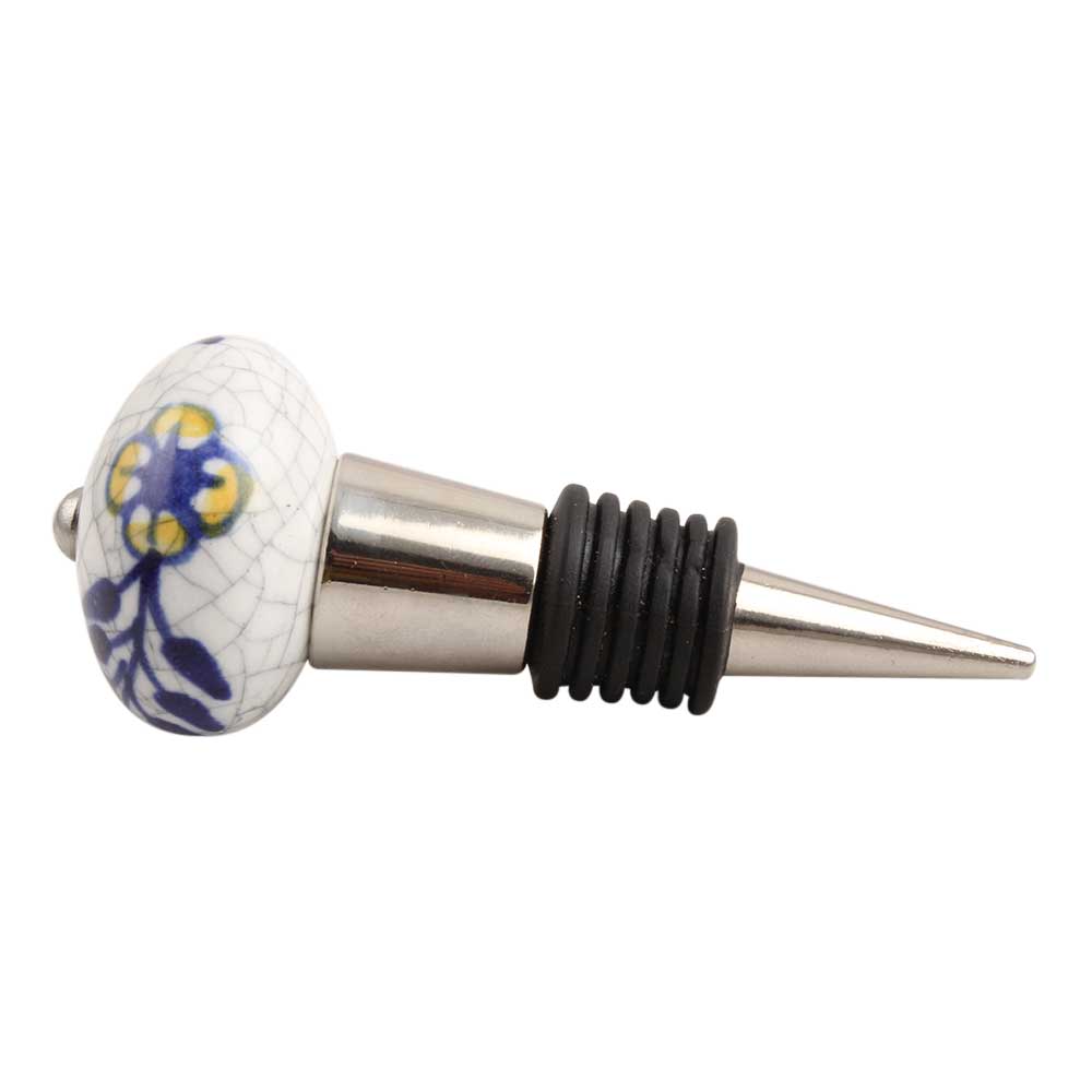 Blue Leaf Crackle Ceramic Wine Stopper