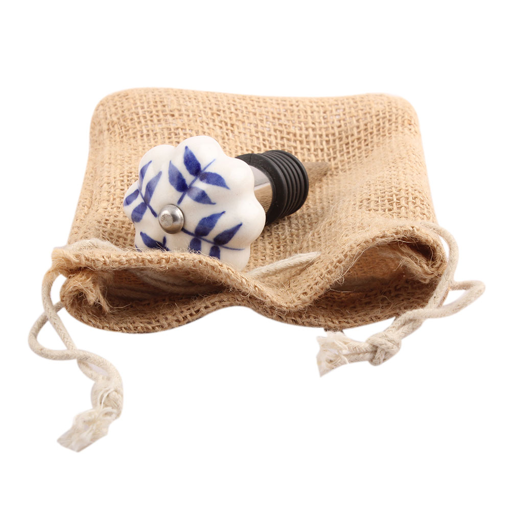 Blue Leaf Medium Ceramic Wine Stopper.zinc alloy wine bottle stopper.