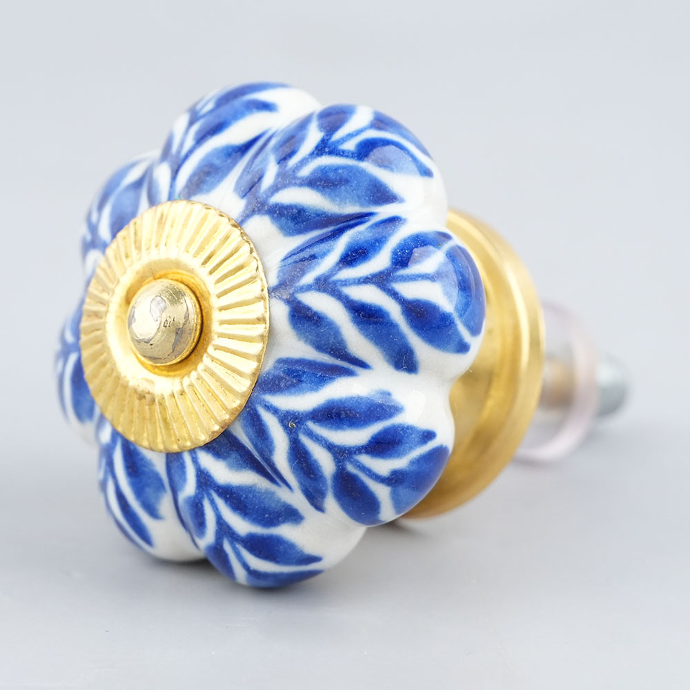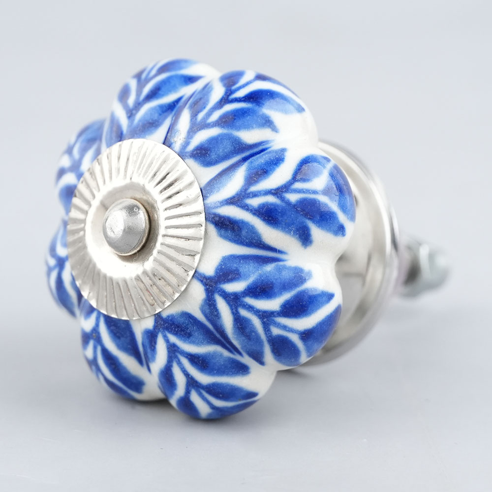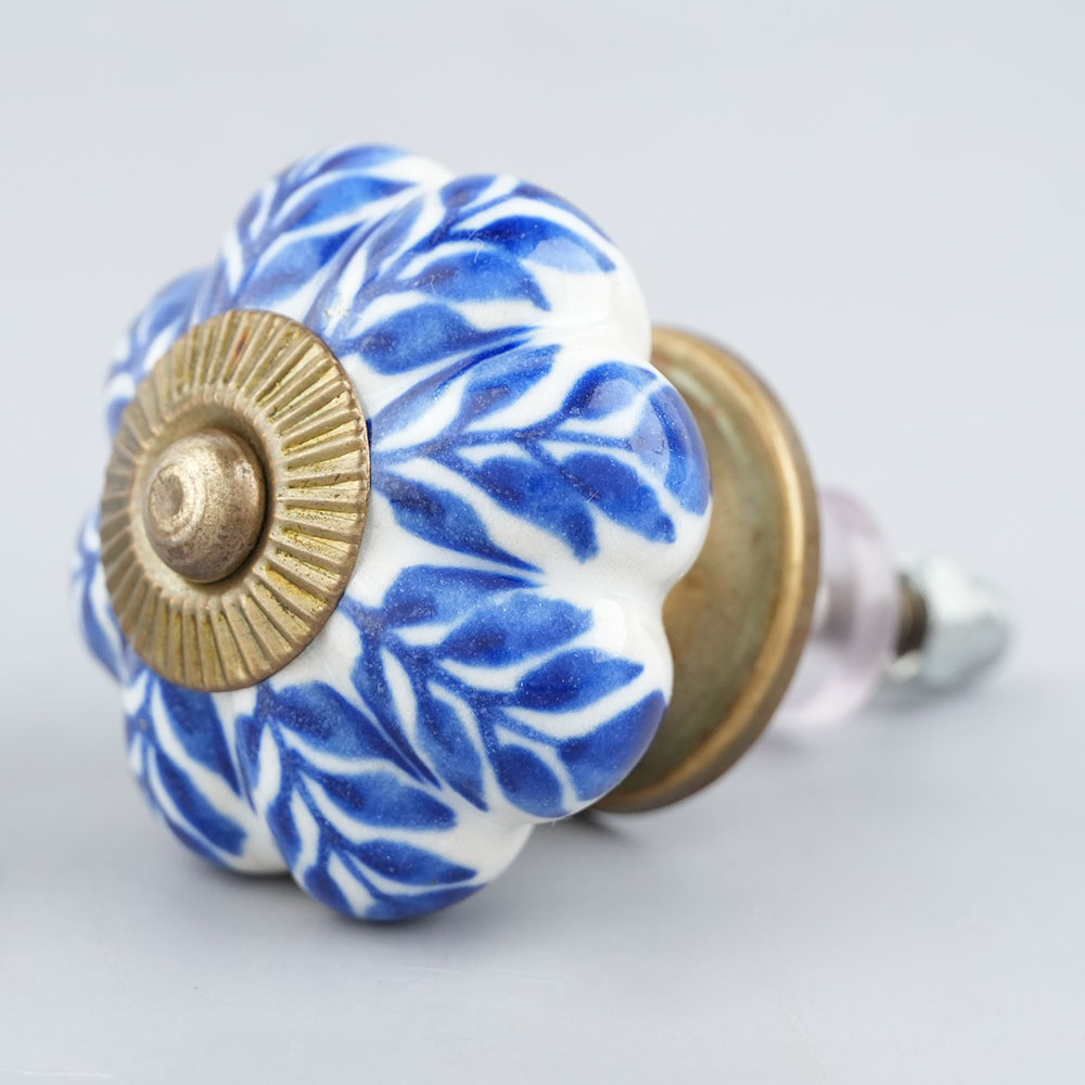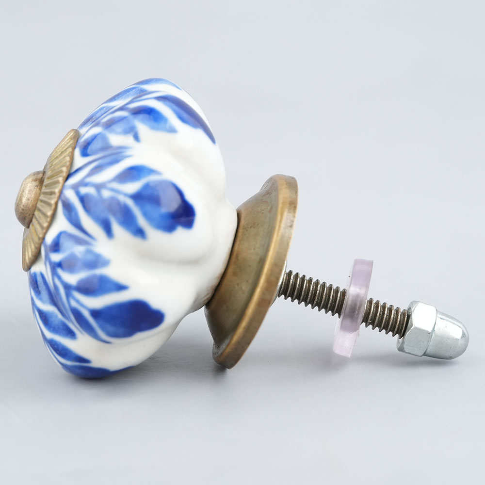 Blue Leaf Medium Melon Ceramic knob. Ideal for kitchen cabinets, kitchen drawers, dining room, bed room, chest drawers, dressing tables, almirah