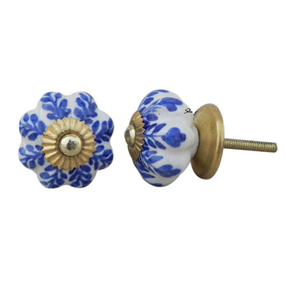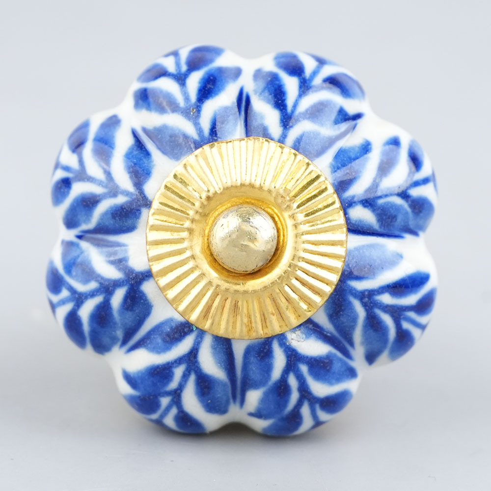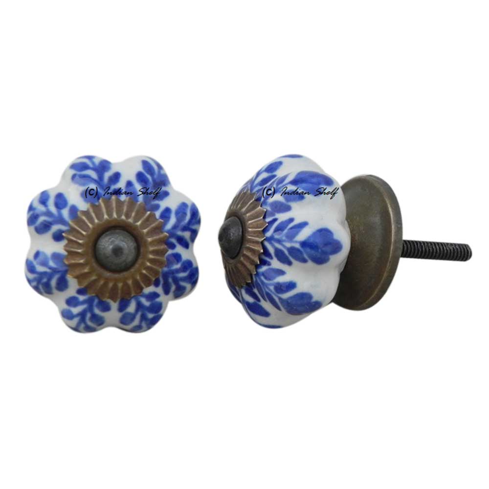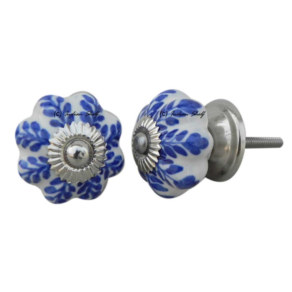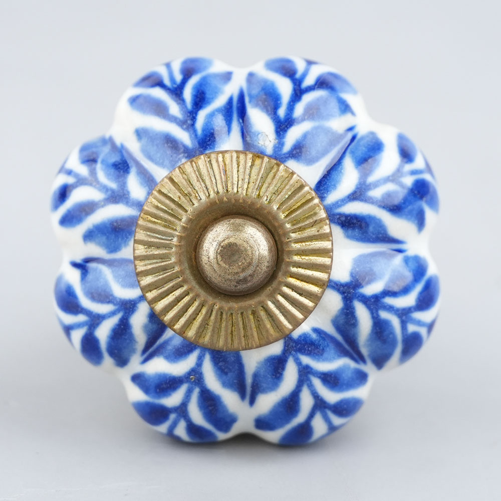 Blue Leaf Medium Melon Ceramic knob. Ideal for kitchen cabinets, kitchen drawers, dining room, bed room, chest drawers, dressing tables, almirah