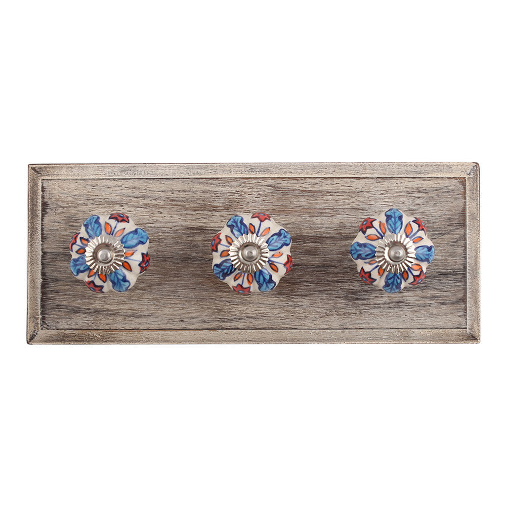 Blue Ocean Ceramic Wooden Hook. A Perfect Complement to the Soft Tone of the Wood are these White Traditional Hat & Coat Hook Made of Genuine Porcelain and Brass. It can be use to Hang Jewellery, Leashes, Towels, Scarves, Light Weight Sweaters, Caps Etc.
