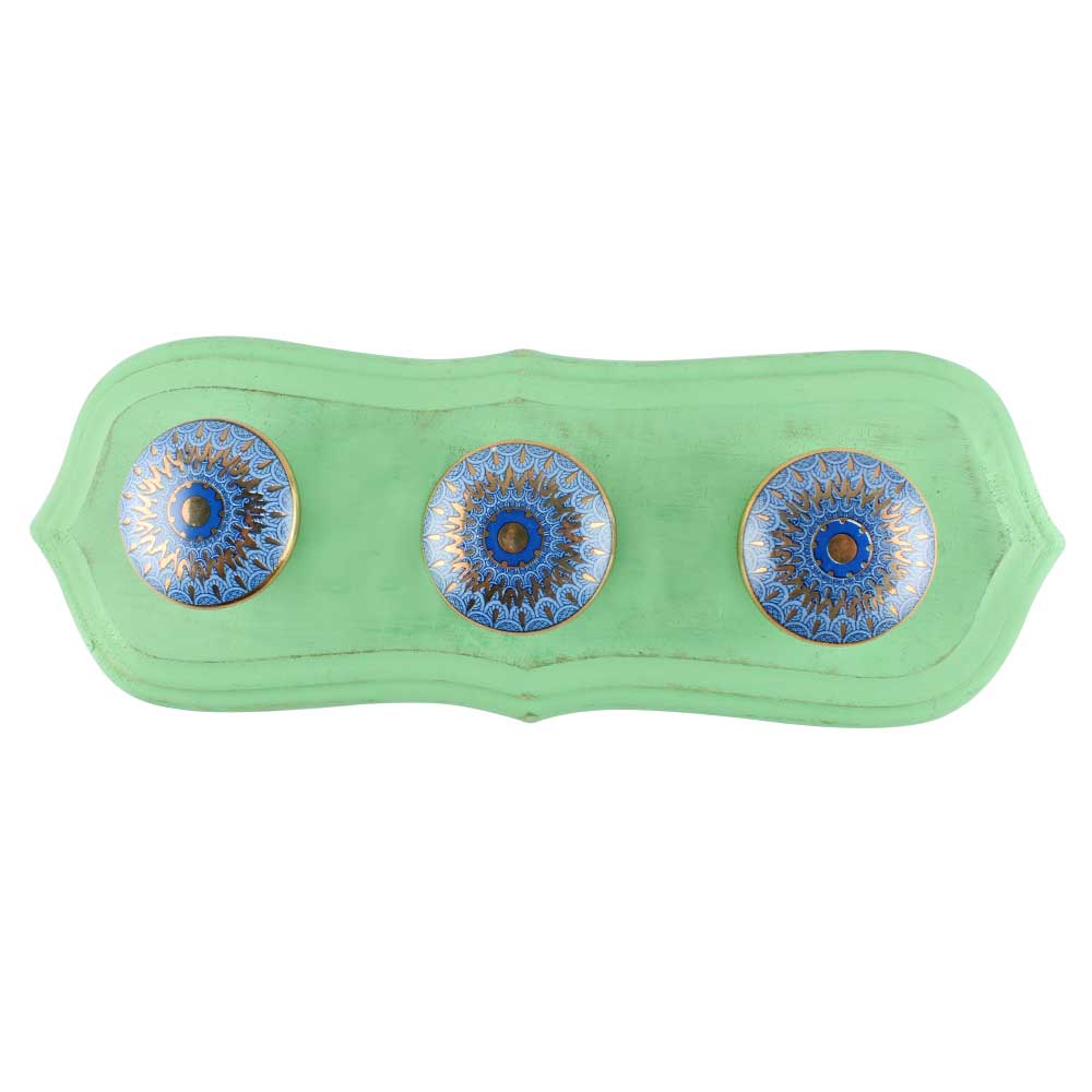 The Blue Pattern Ceramic Wooden Hook in Green Finish is a functional decor piece that brings timeless charm to your walls. Featuring a delicately hand-glazed blue pattern on a high-fired ceramic dome, set against a green-painted solid wood base, this wall hook is crafted to elevate both organization and aesthetics. Inspired by vintage tilework and earthy tones, it effortlessly blends tradition with modern utility—perfect for any space needing a stylish touch.