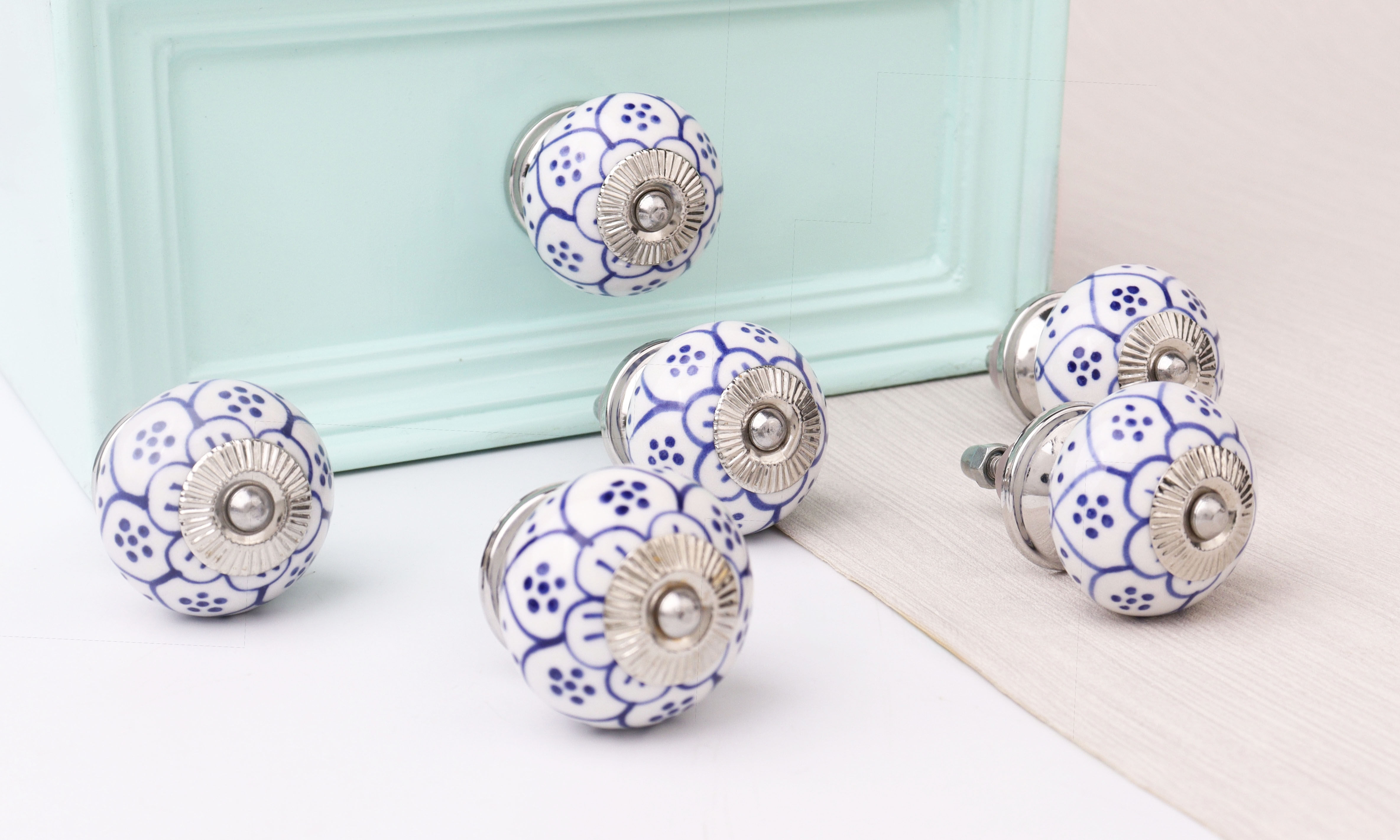 Installing the Blue Poinsettia Flower Cabinet Knob is straightforward. With pre-drilled holes and clear instructions, swapping out old knobs for this beautiful flower design is a quick and easy way to refresh your furniture.
