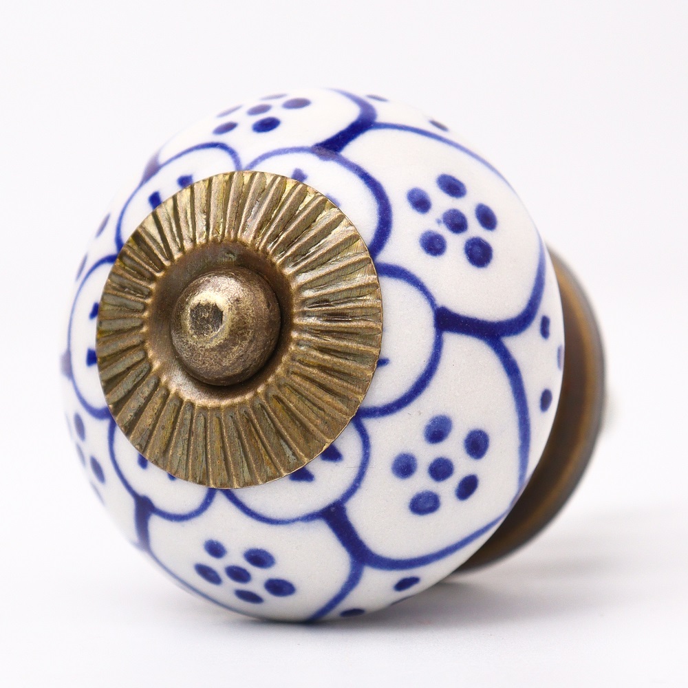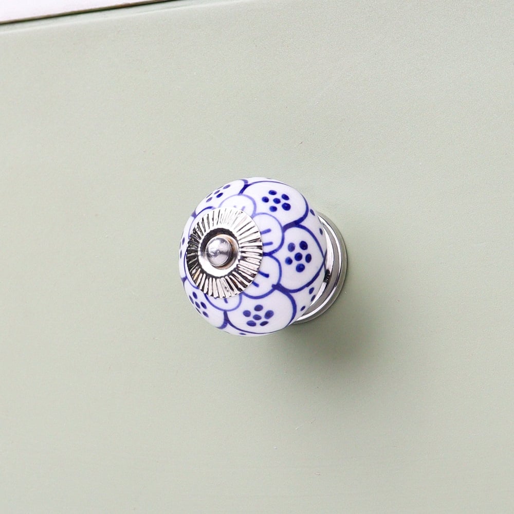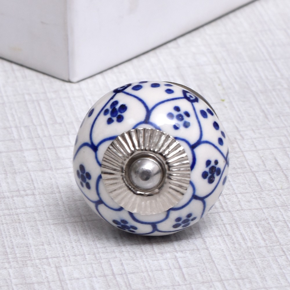 This knob's versatile design makes it ideal for a variety of furniture, from vintage cabinets to modern drawers. The elegant blue flower pattern adds charm and style to both traditional and contemporary interiors.