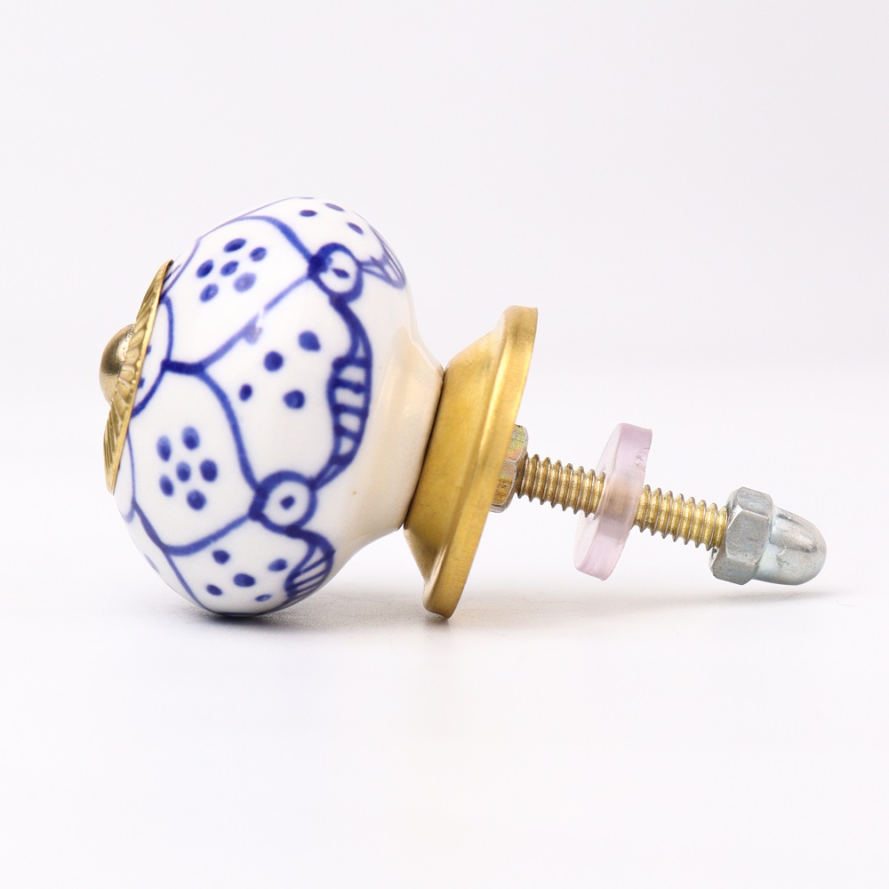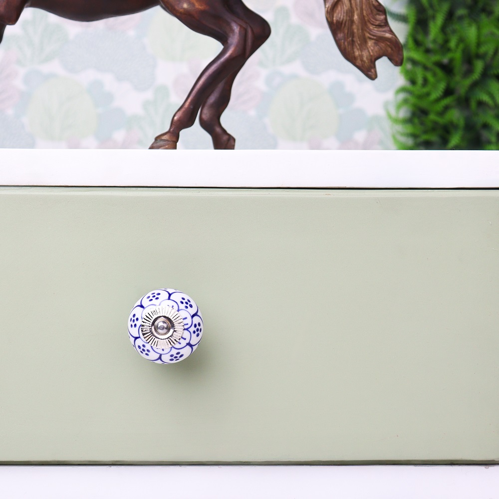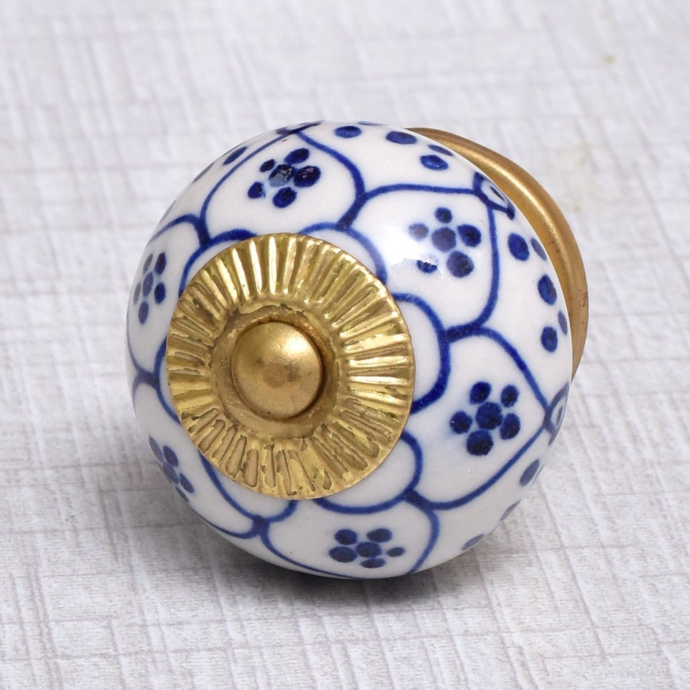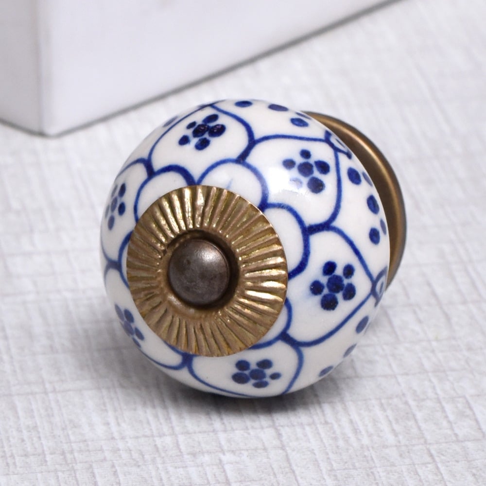 This knob's versatile design makes it ideal for a variety of furniture, from vintage cabinets to modern drawers. The elegant blue flower pattern adds charm and style to both traditional and contemporary interiors.