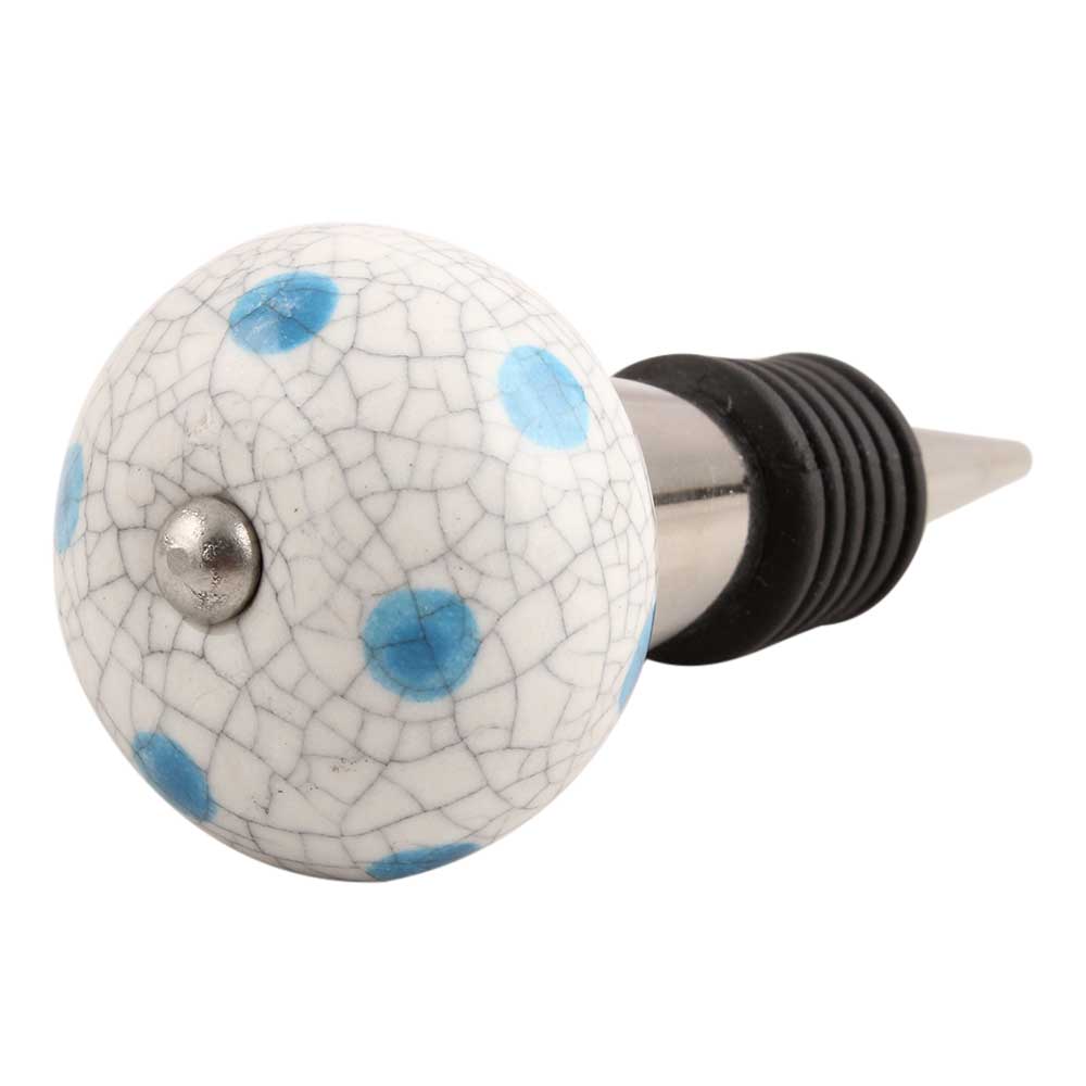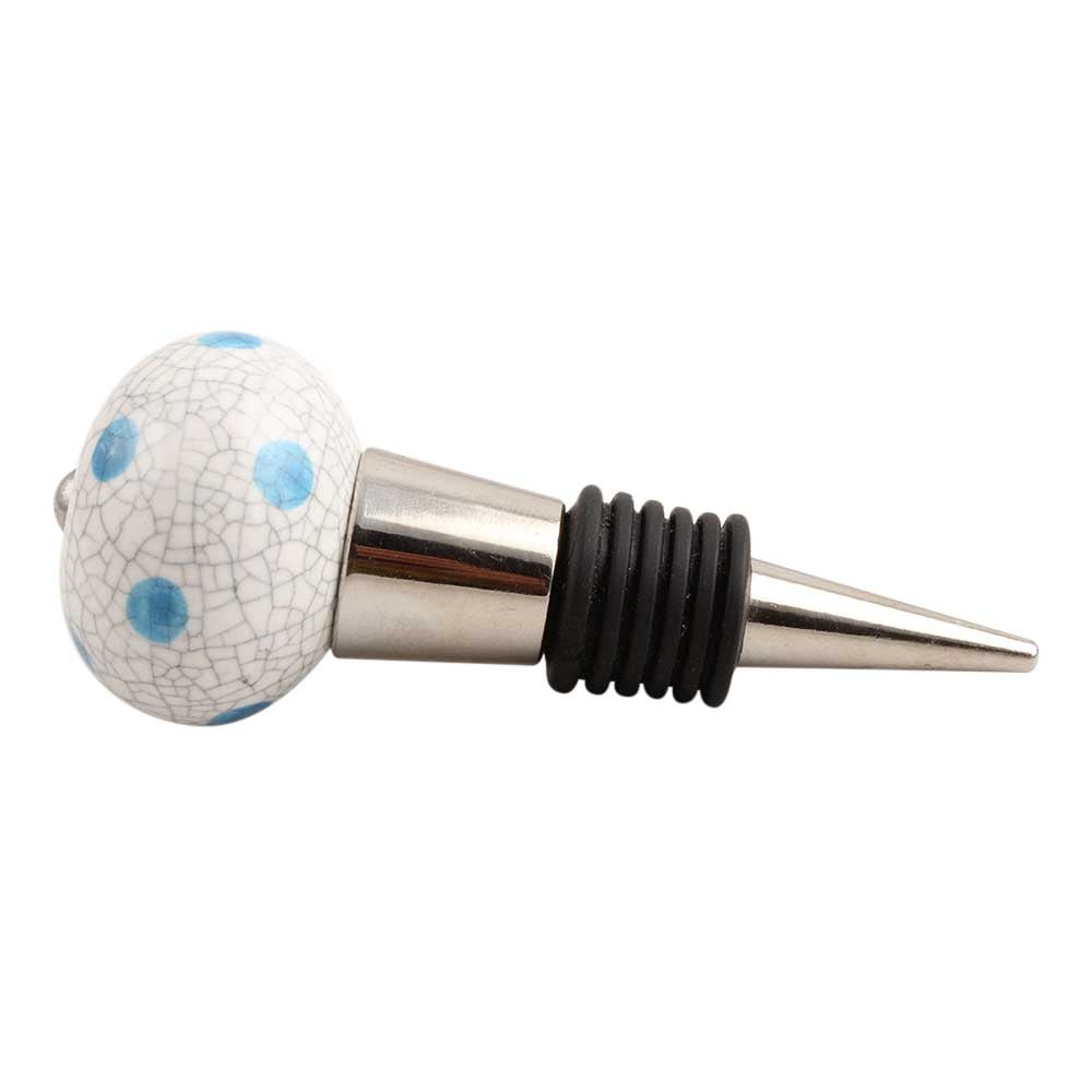 Blue Polka Dot Crackle Ceramic Wine Stopper