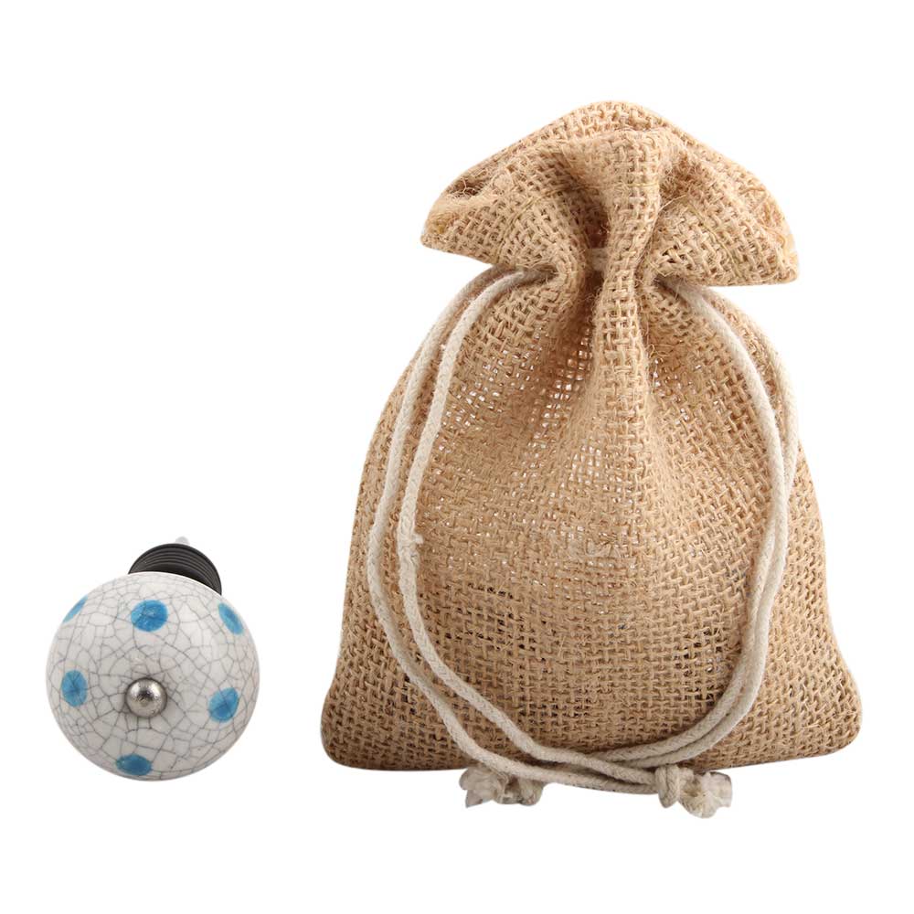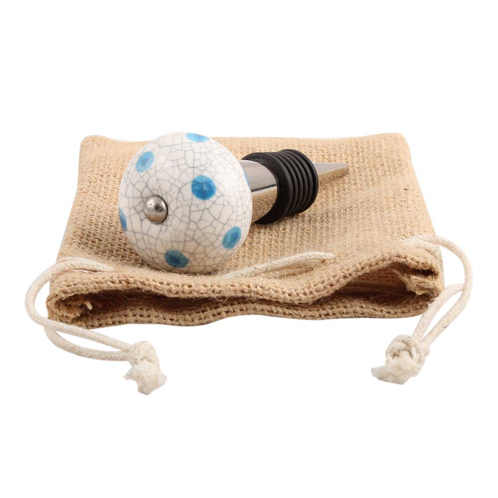 Blue Polka Dot Crackle Ceramic Wine Stopper.zinc alloy wine bottle stopper with attractive Jute Bag Packaging.