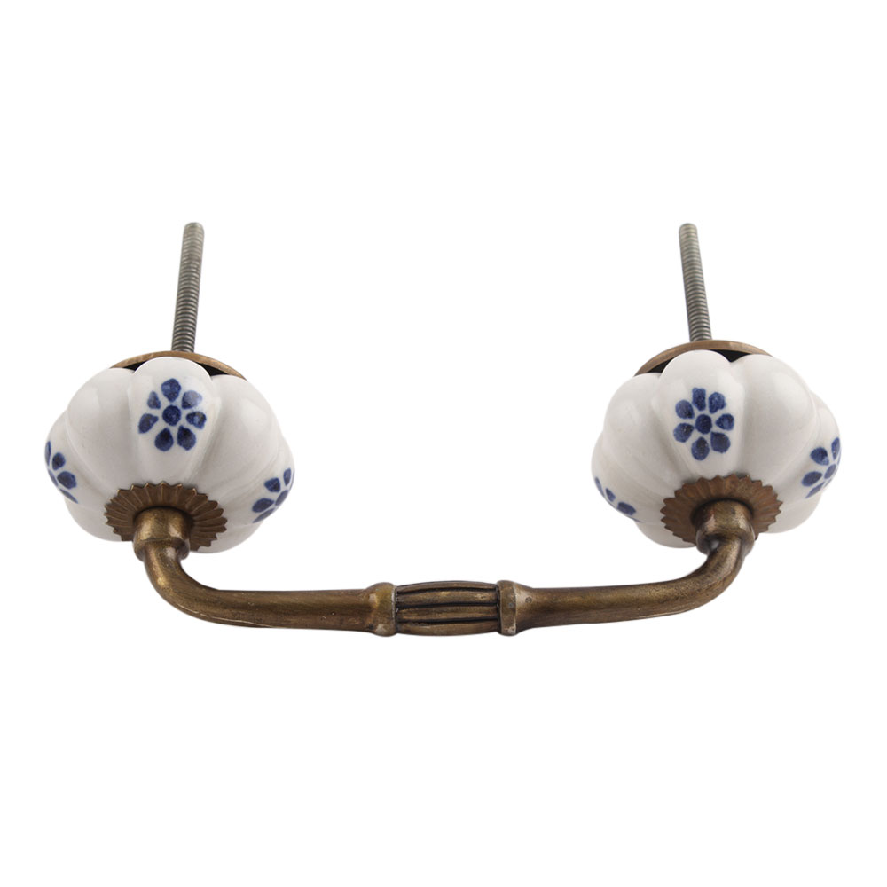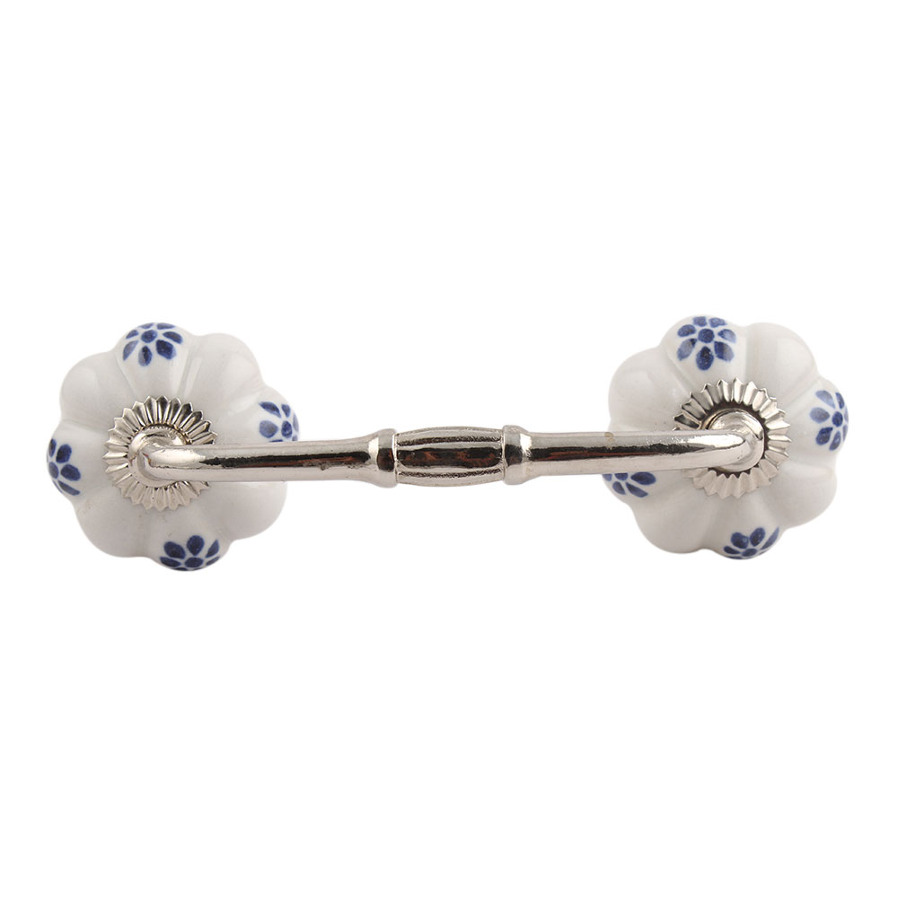 Blue Protea Ceramic Bridge Handle. Ideal for Drawer, Dresser, Cabinet, Wardrobe, Cupboard and Almirah.