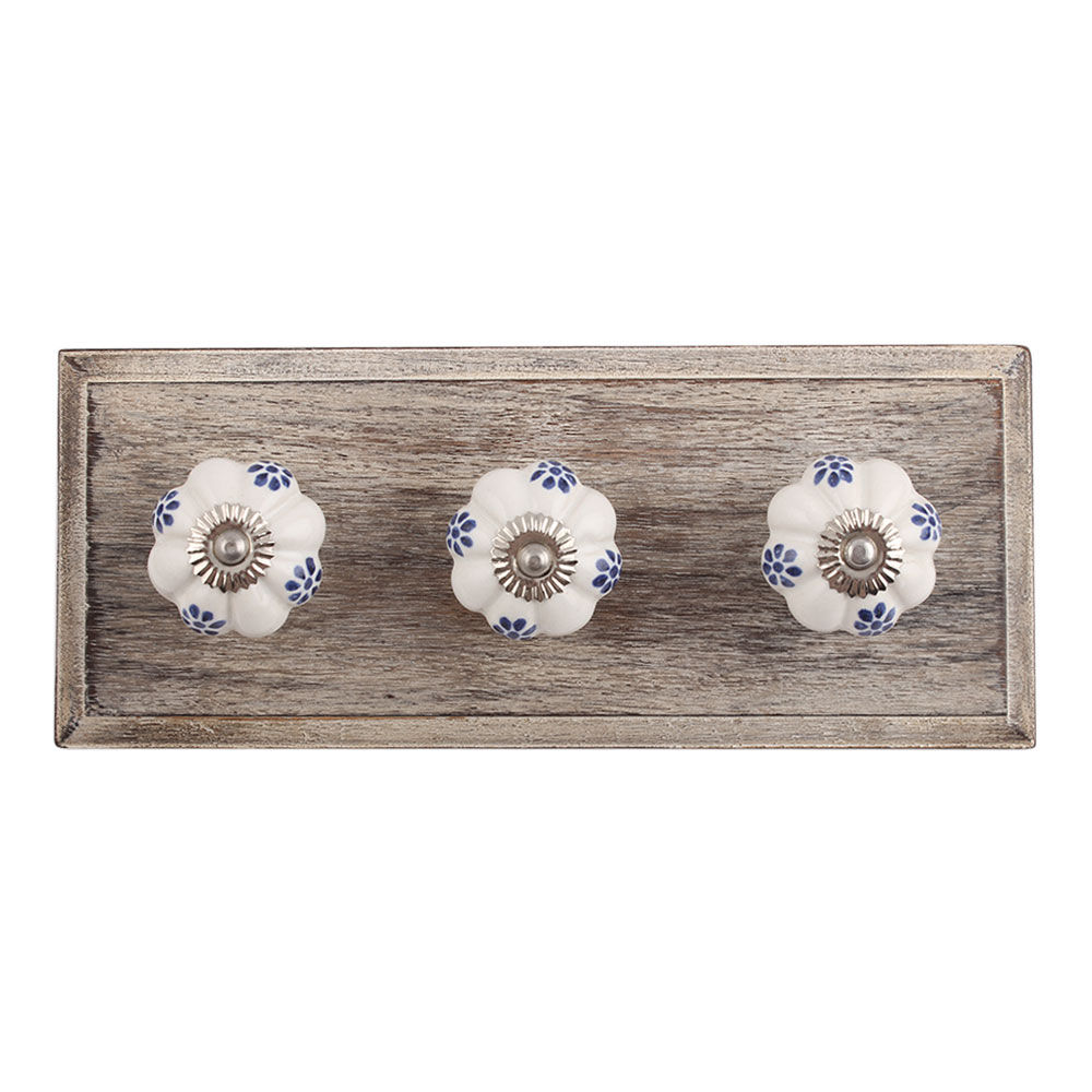 Blue Protea Ceramic Wooden Hook. A Perfect Complement to the Soft Tone of the Wood are these White Traditional Hat & Coat Hook Made of Genuine Porcelain and Brass. It can be use to Hang Jewellery, Leashes, Towels, Scarves, Light Weight Sweaters, Caps Etc.