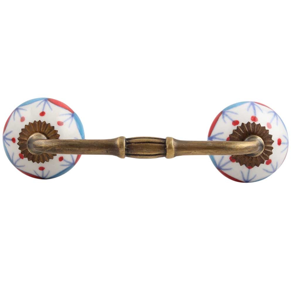 Blue Red Design Ceramic Bridge Handle. Ideal for Drawer, Dresser, Cabinet, Wardrobe, Cupboard and Almirah.