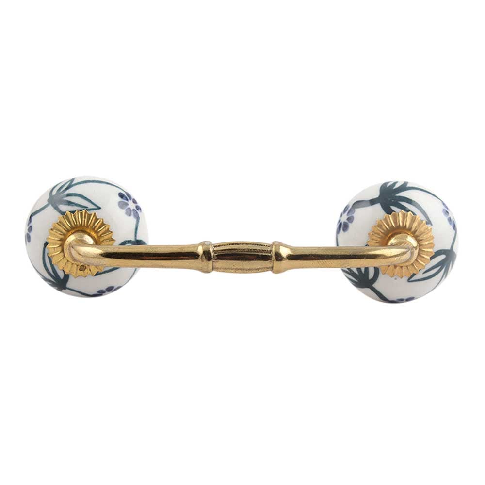 Blue Spring Flower Ceramic Bridge Handle. Ideal for Drawer, Dresser, Cabinet, Wardrobe, Cupboard and Almirah.