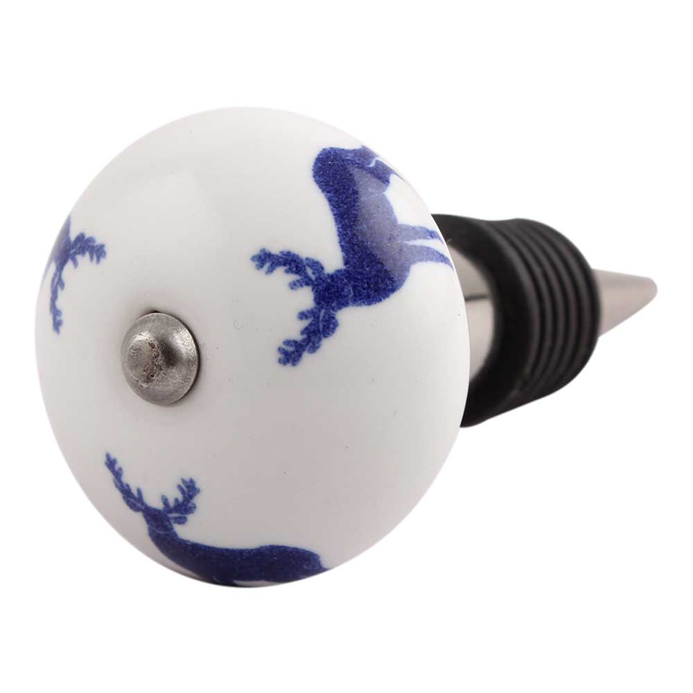 Blue Standing Rein Deer Pattern Ceramic Wine Stopper