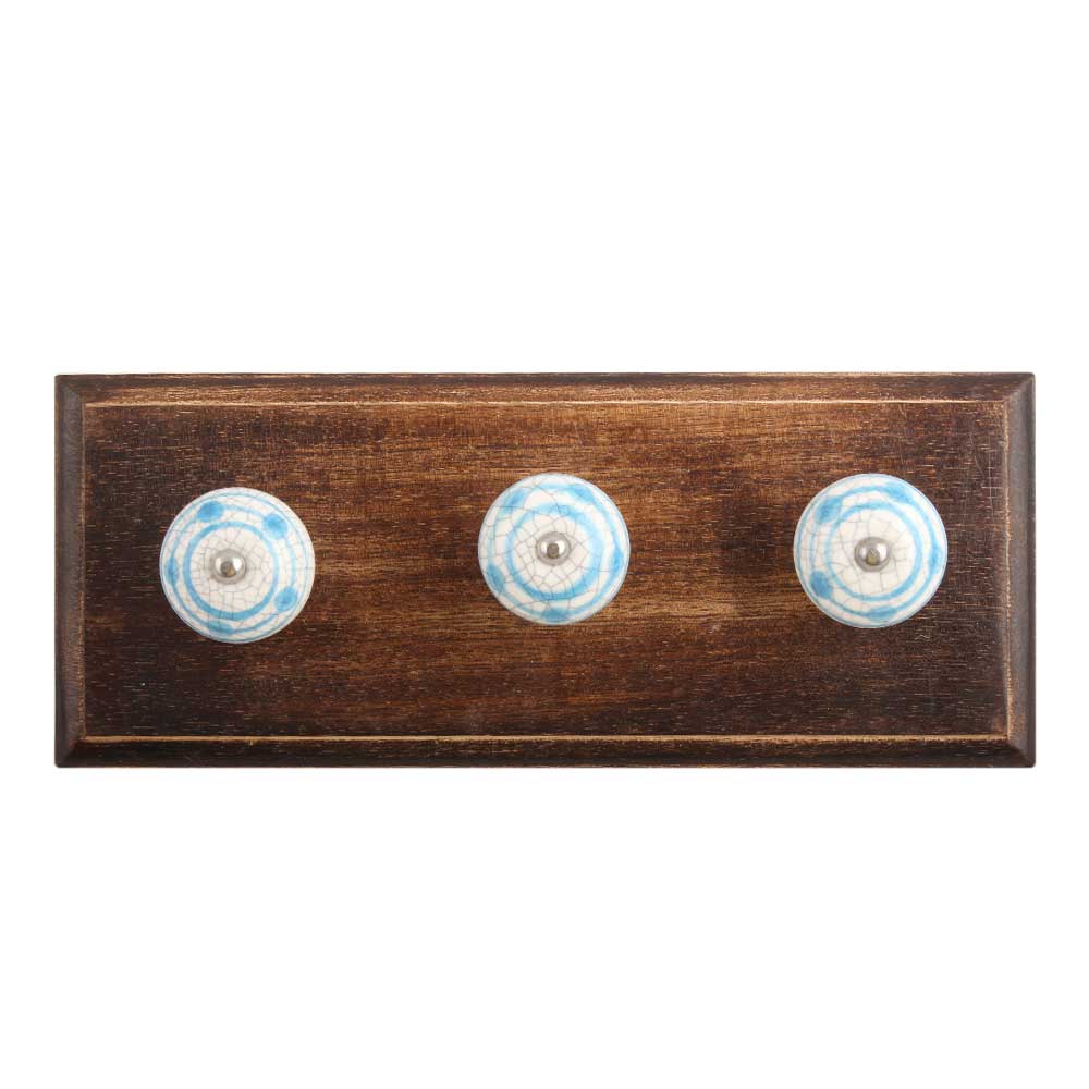Blue Striped Polka Dot Crackle Ceramic Wooden Hook. A Perfect Complement to the Soft Tone of the Wood are these White Traditional Hat & Coat Hook Made of Genuine Porcelain and Brass. It can be use to Hang Jewellery, Leashes, Towels, Scarves, Light Weight Sweaters, Caps Etc.