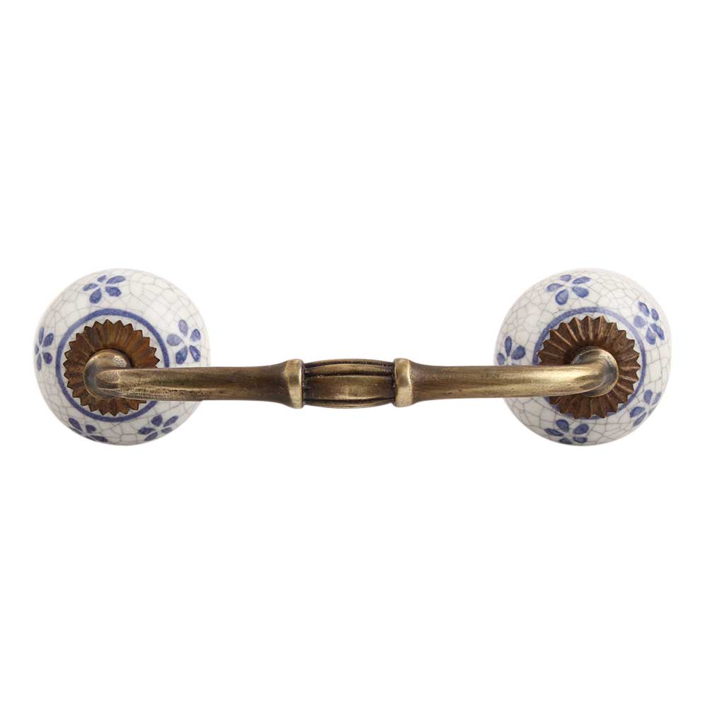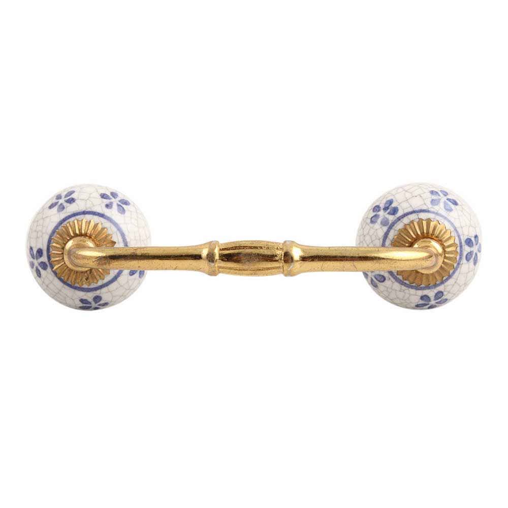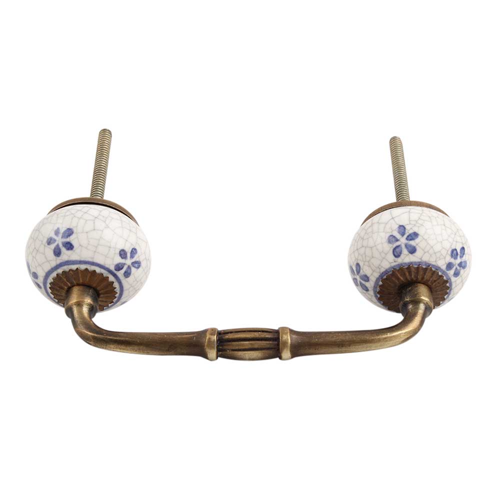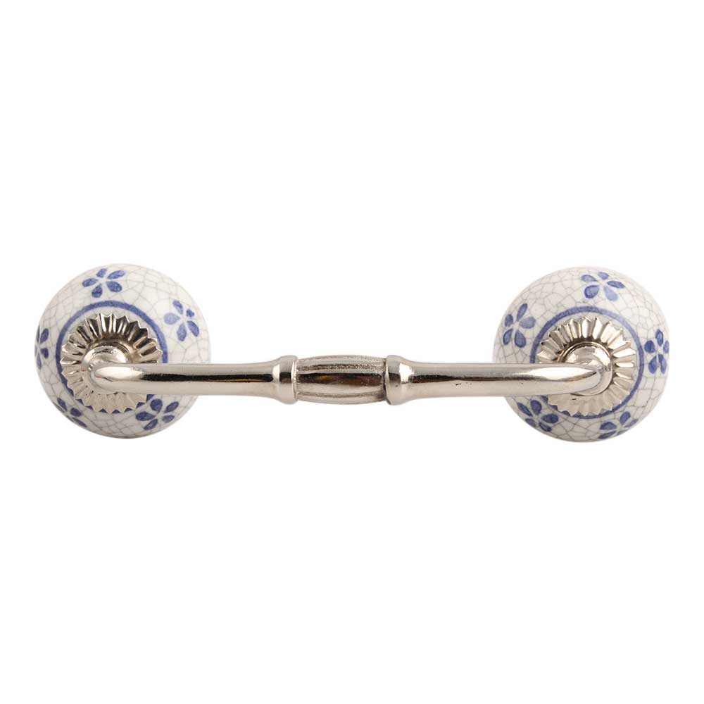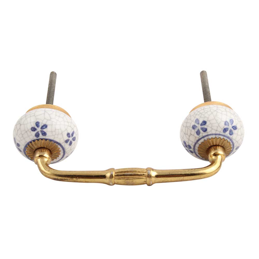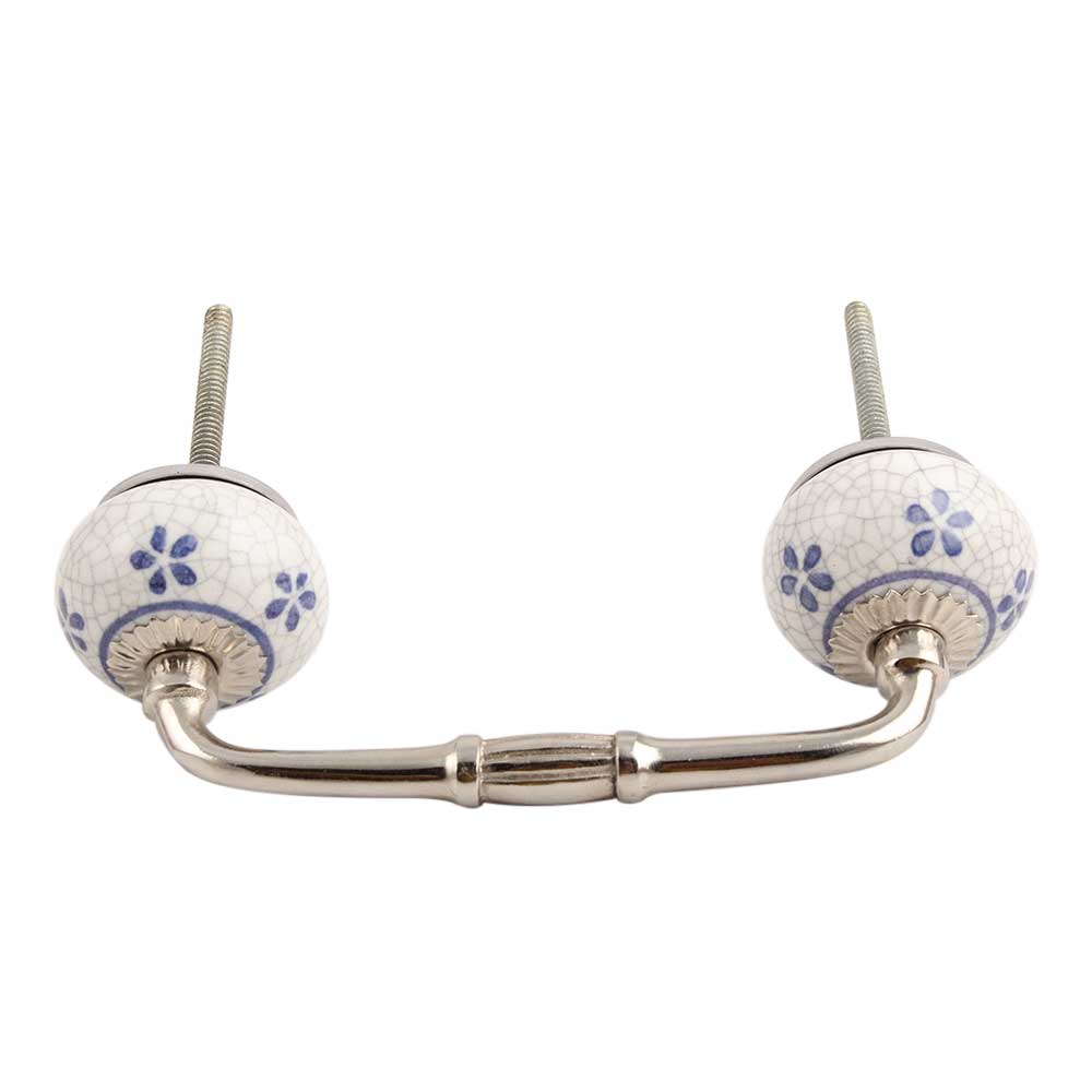 Blue Tiny Flower Crackle Ceramic Bridge Handle. Ideal for Drawer, Dresser, Cabinet, Wardrobe, Cupboard and Almirah.
