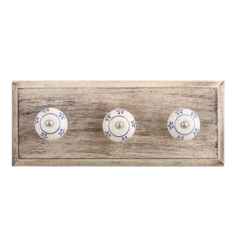 Blue Tiny Flower Crackle Ceramic Wooden Hook. A Perfect Complement to the Soft Tone of the Wood are these White Traditional Hat & Coat Hook Made of Genuine Porcelain and Brass. It can be use to Hang Jewellery, Leashes, Towels, Scarves, Light Weight Sweaters, Caps Etc.