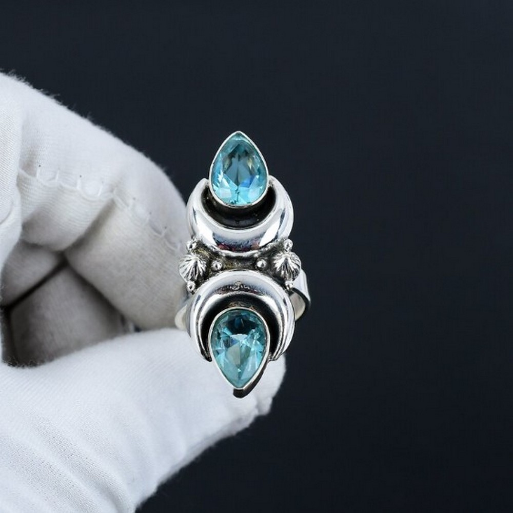 Adorn yourself with the allure of our blue topaz crescent moon 925 sterling silver ring handmade boho jewelry, where natural blue topaz, 925 sterling silver and crescent moon come together to create a modern simplicity. This ring is for stylish individuals, each piece reflecting individuality and care. Packed & quality-checked by Indianshelf.