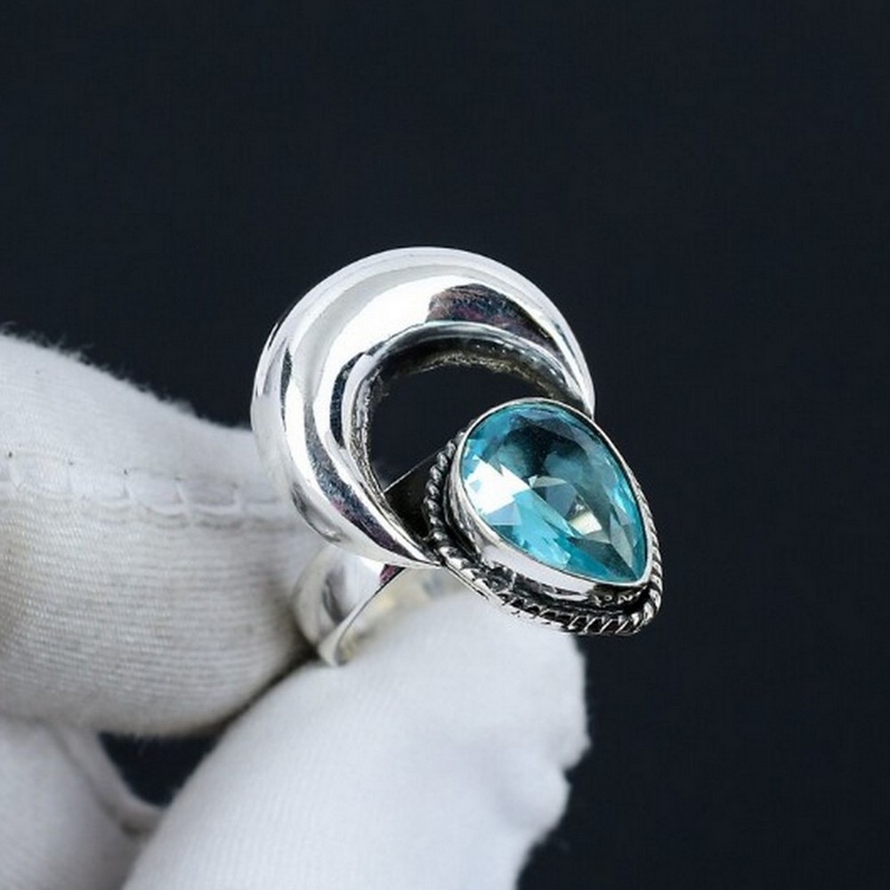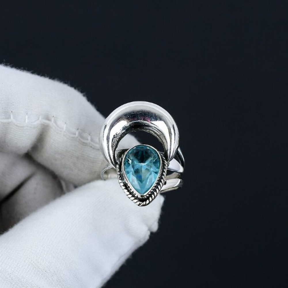 Experience the allure of our blue topaz moon 925 sterling silver ring handmade boho jewelry, where natural blue topaz, 925 sterling silver and crescent moon come together to create a everyday elegance. This ring is for trendsetters, each piece reflecting individuality and care. Packed & quality-checked by Indianshelf.