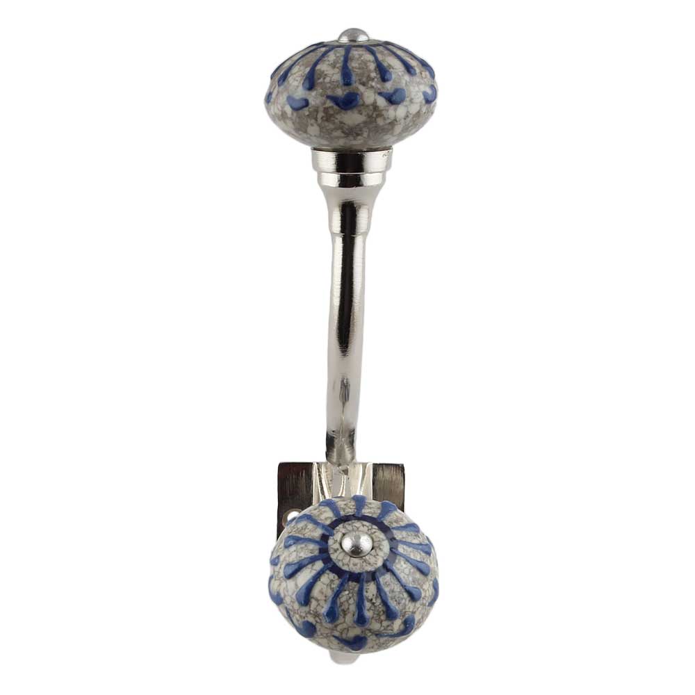 Blue Wheel Crackle Ceramic Silver Iron Hook. When Put on Wall or Cabinet It Gives A Sturdy Look. This Hook is Strong Enough to Hold Your Cloths, Keys, Tea Cups, Coffee Mugs, Hand Towels etc.