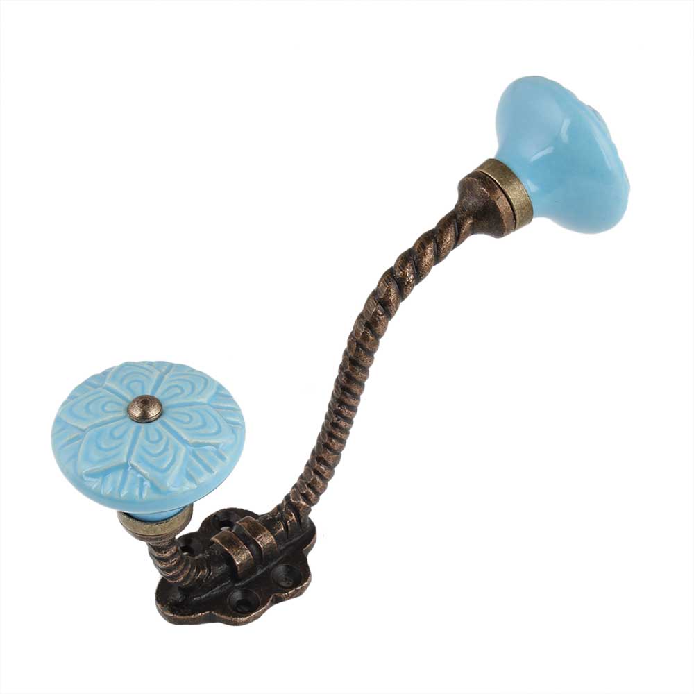 Add a touch of handcrafted elegance to your walls with the Blue Wheel Flower Ceramic Antique Rope Iron Hook. Featuring a beautifully glazed blue ceramic flower and a robust wrought iron hook with antique rope detailing, this decorative hook blends rustic design with a fresh pop of color. Crafted by skilled artisans, it’s not just a hook—it’s a practical piece of wall art that enhances your space while keeping essentials neatly organized.