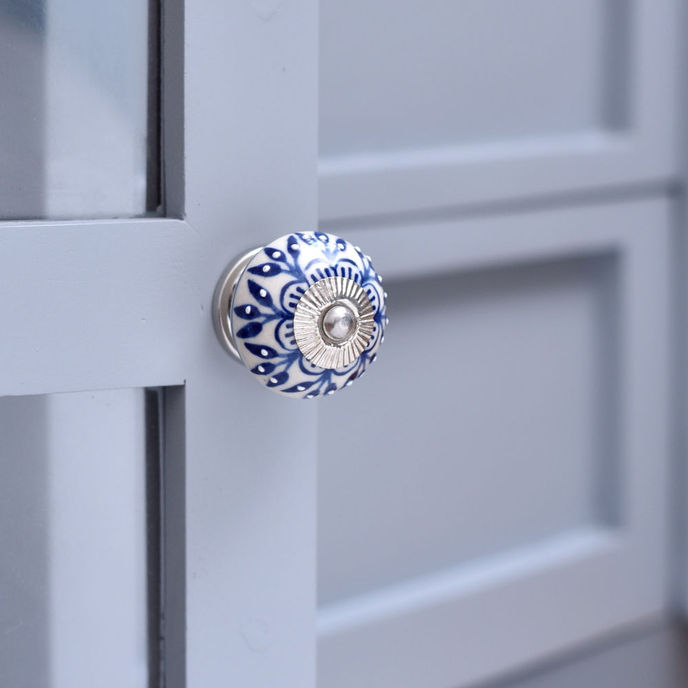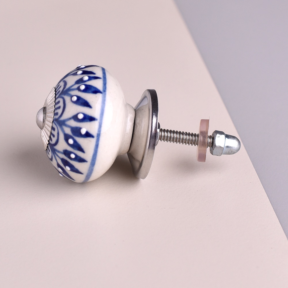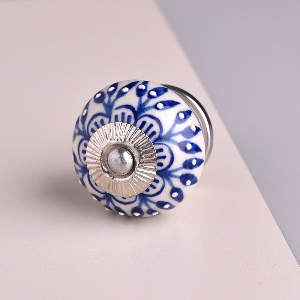 This knob is perfect for making a bold floral statement. Crafted from premium ceramic, it is built to last. Its sturdy construction ensures that the vibrant blue color and intricate flower design will endure daily use, making it a long-lasting addition to your furniture.