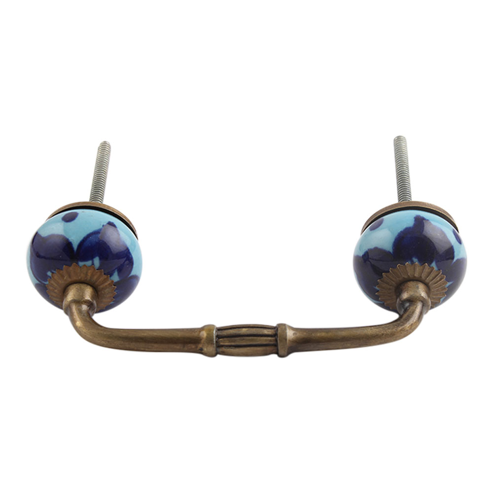 Blueanemone Flower Ceramic Bridge Handle. Ideal for Drawer, Dresser, Cabinet, Wardrobe, Cupboard and Almirah.