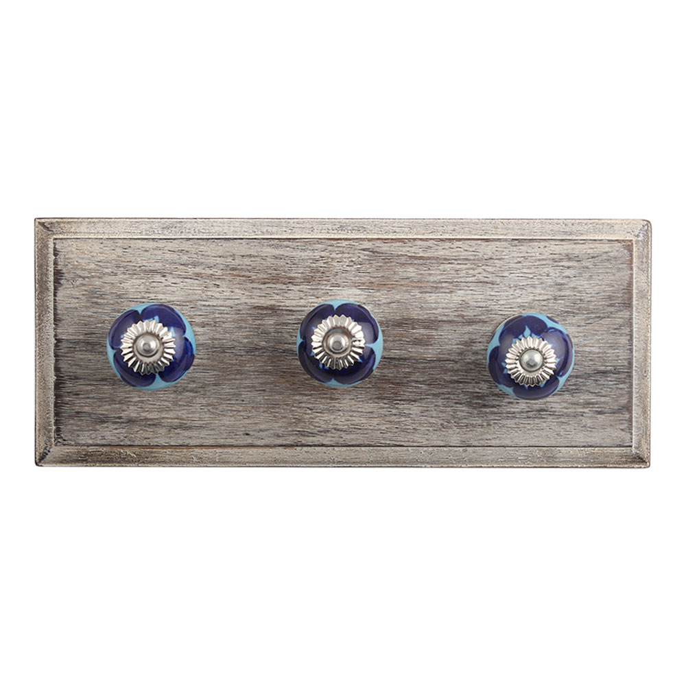 Blueanemone Flower Ceramic Wooden Hook. A Perfect Complement to the Soft Tone of the Wood are these White Traditional Hat & Coat Hook Made of Genuine Porcelain and Brass. It can be use to Hang Jewellery, Leashes, Towels, Scarves, Light Weight Sweaters, Caps Etc.