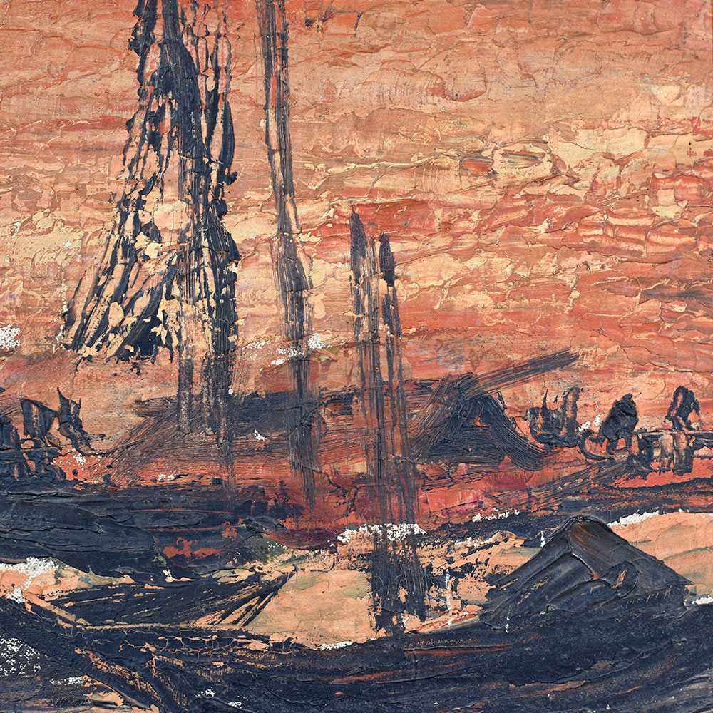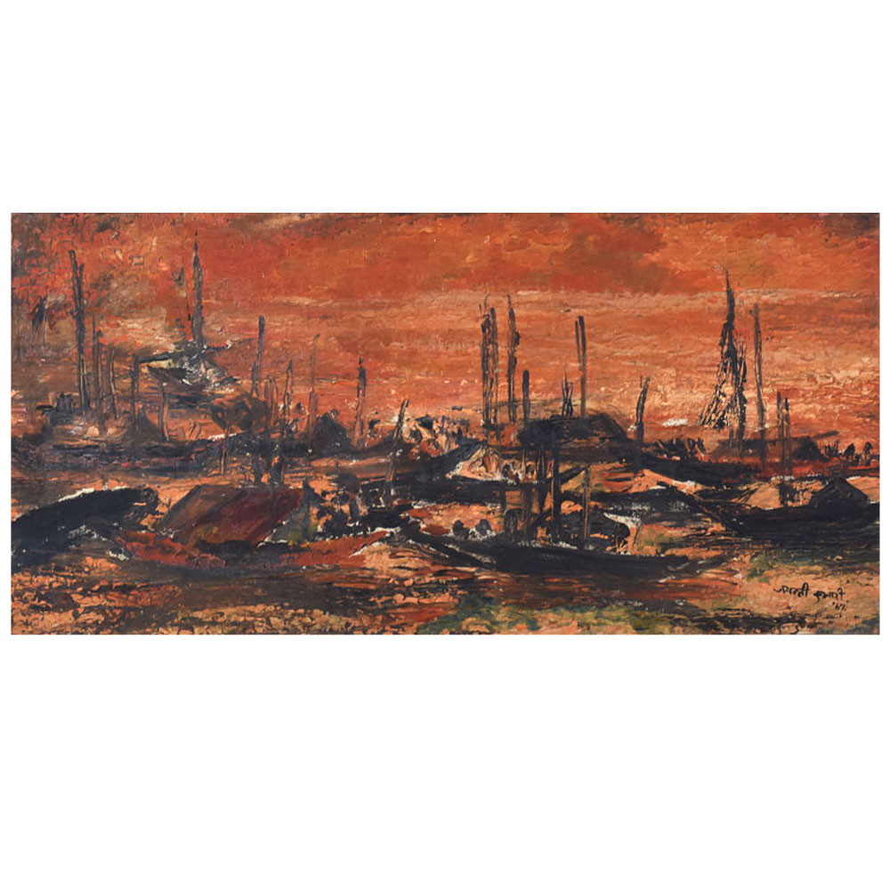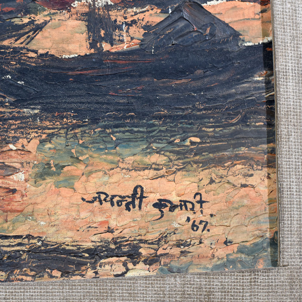Transport yourself to the calming shores of a seaside sunset with this breathtaking board painting by Jayanti Kumari. Painted in 1967, this piece masterfully depicts a serene scene of boats gently drifting on a glowing, orange-hued sea. The warm colors and soft, brushstroked textures create a sense of peace and relaxation, inviting you to slow down and immerse yourself in the beauty of nature. Whether displayed in your living room, bedroom, or office, this captivating artwork will transport you to a place of tranquility and inspire you to savor life's simple pleasures. Its timeless appeal makes it a stunning addition to any home or workspace, elevating the ambiance with its serene, contemplative atmosphere. Infuse your space with the calming essence of a sunset by the sea and let this exquisite board painting from Jayanti Kumari become a cherished centerpiece in your décor.
