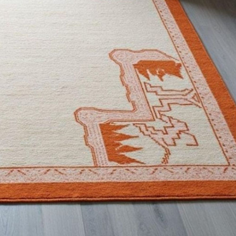 Design & Aesthetic This rug features a minimal yet traditional design, crafted with a soft cream base and accented with bold orange geometric motifs along the border. The clean center allows your furniture to stand out, while the border adds just the right amount of character to the space. Material & Quality Hand-Tufted in Premium Wool Ensures natural softness, warmth, and long-lasting durability. Comfort Underfoot Wool naturally provides a plush, comfortable feel, perfect for daily living. Eco-Friendly Wool is sustainable, biodegradable, and naturally flame-resistant. Pattern & Color Base Color: Neutral cream that brightens the space. Border Color: Rich orange, adding vibrancy without overpowering the room. Motifs: Geometric and abstract mountain-inspired shapes, blending tradition with contemporary minimalism. Versatility This rug fits seamlessly into multiple settings: Living rooms to create a welcoming, cozy vibe. Bedrooms for a warm, grounding touch. Study rooms or offices to add character without distraction. The high-quality wool ensures resilience against daily wear while maintaining its beauty for years. Customization Available We also offer custom sizes and colors to perfectly fit your space and design preferences. As it Appears Pack of One Piece.