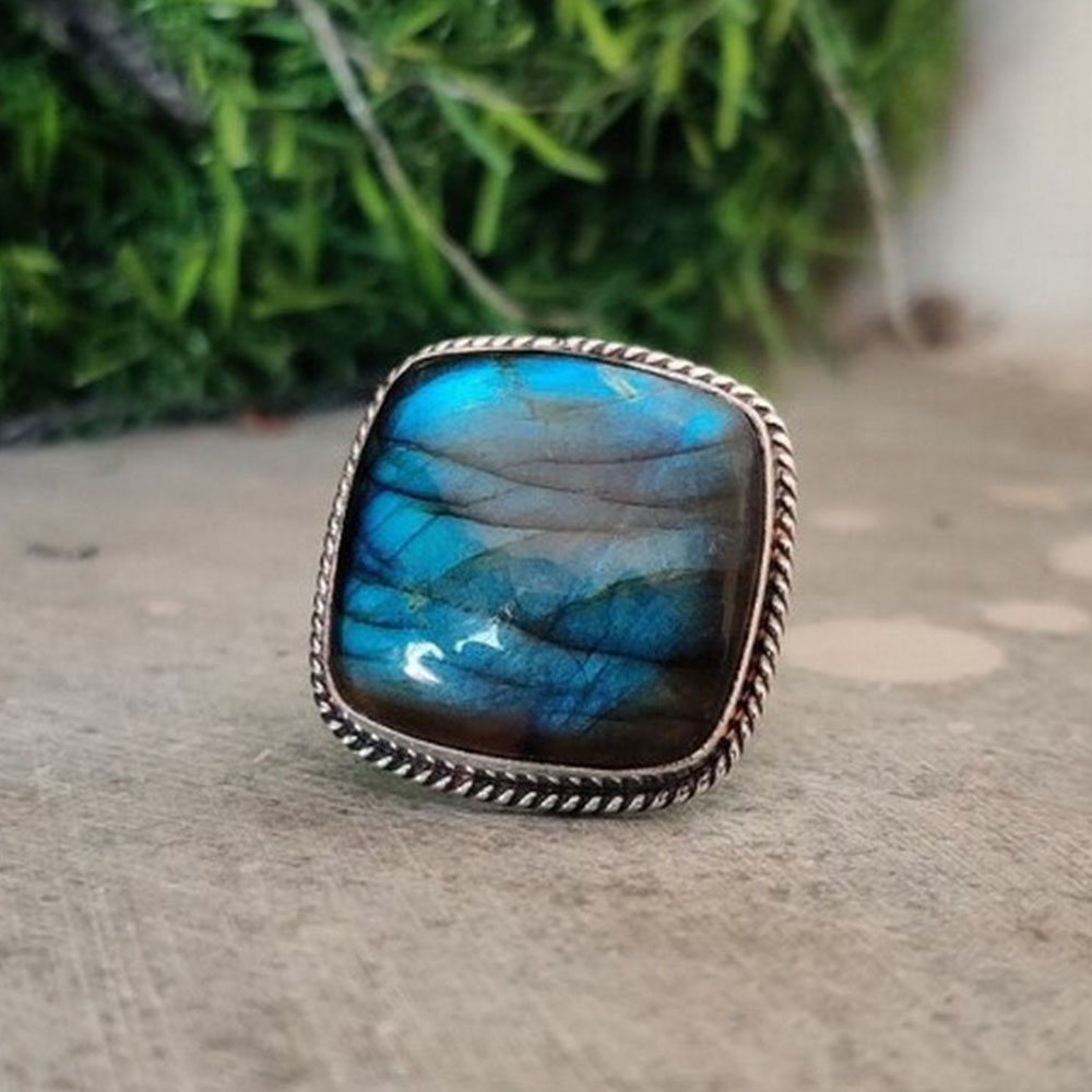 Discover the allure of our boho labradorite silver ring 925 sterling silver handmade gemstone jewelry, where natural labradorite, 925 sterling silver and boho come together to create a spiritual connection. This ring is for decor enthusiasts, each piece reflecting individuality and care. Packed & quality-checked by Indianshelf.