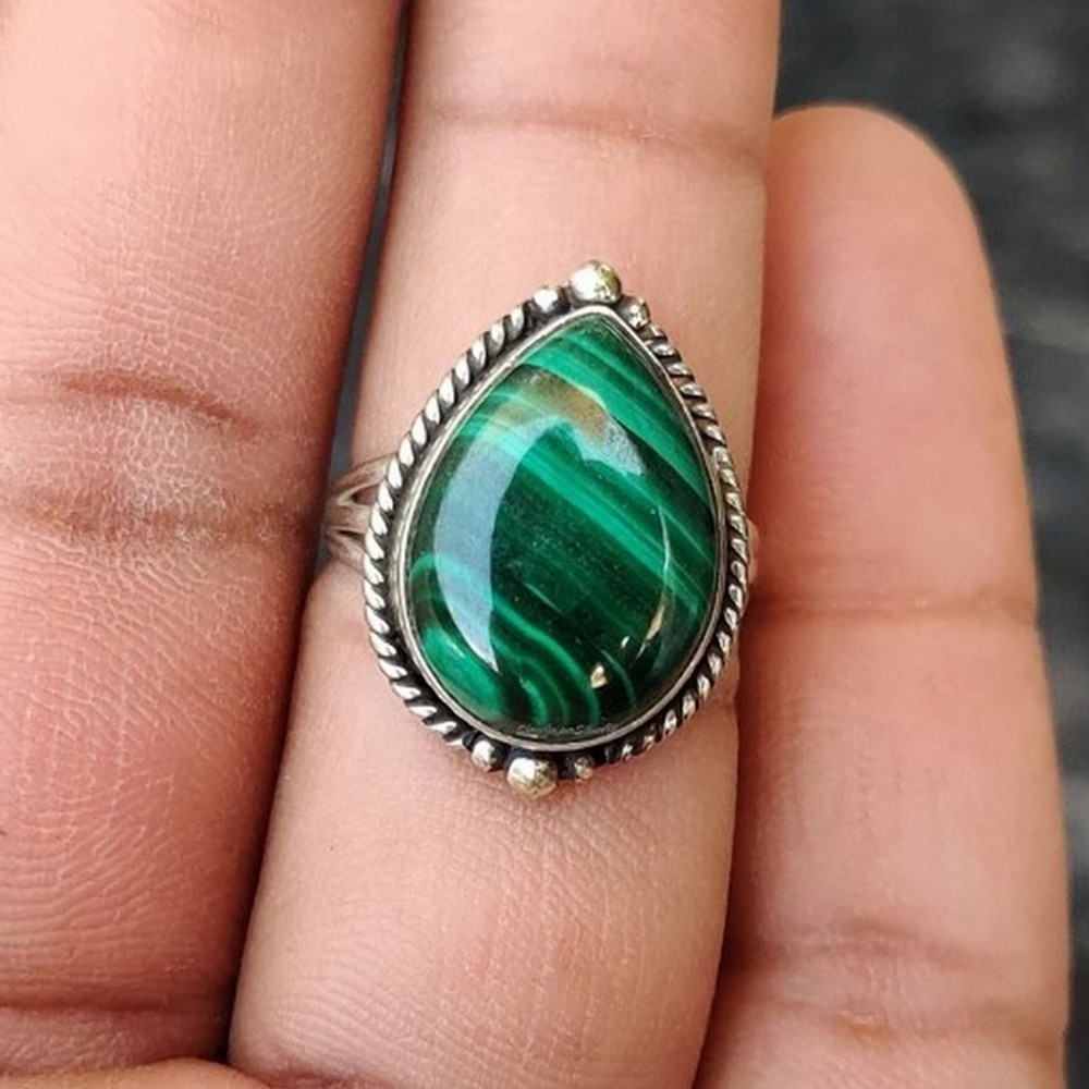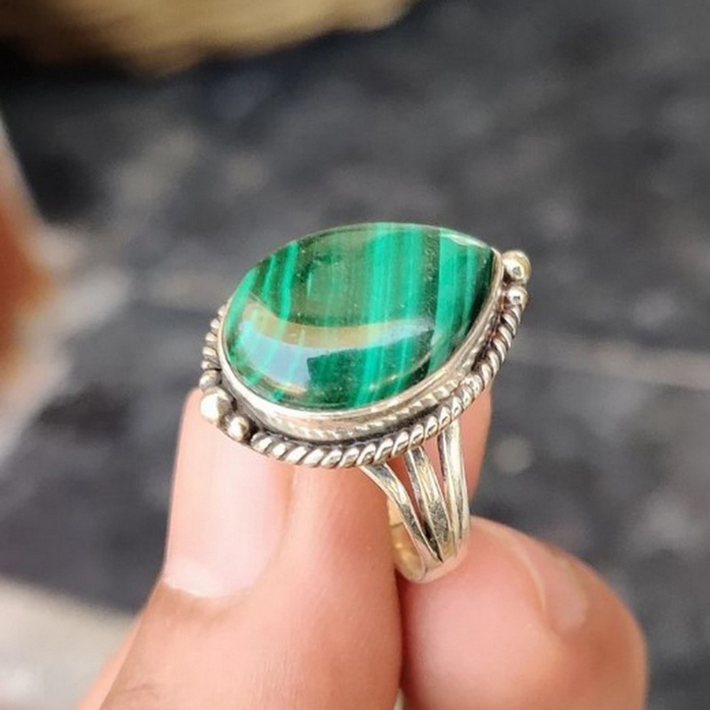 Celebrate the allure of our boho malachite ring 925 sterling silver handmade gemstone jewelry, where natural malachite, 925 sterling silver and boho come together to create a unique style. This ring is for gift givers, each piece reflecting individuality and care. Packed & quality-checked by Indianshelf.