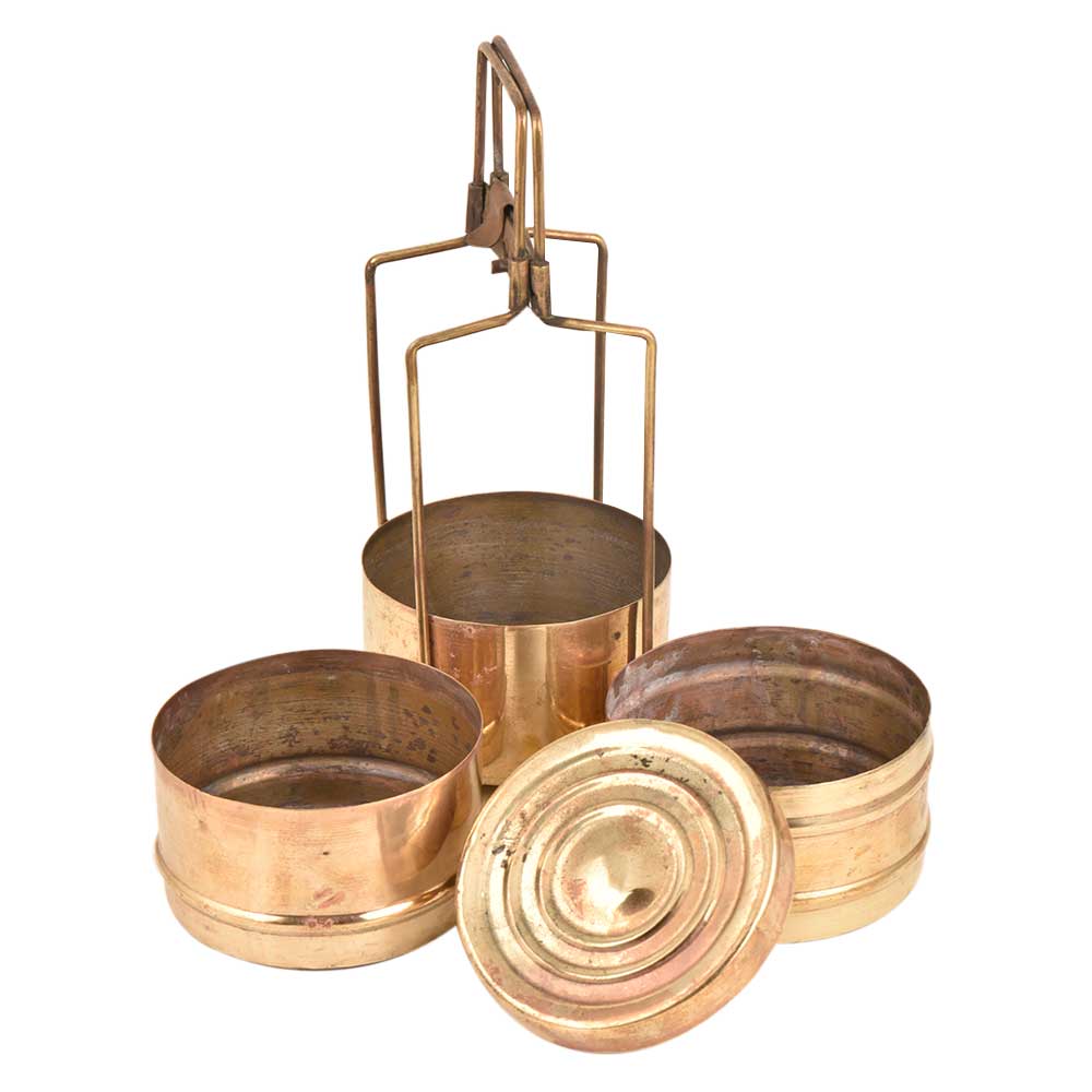 Brass 3 Compartment Traditional Lunch Tiffin Box