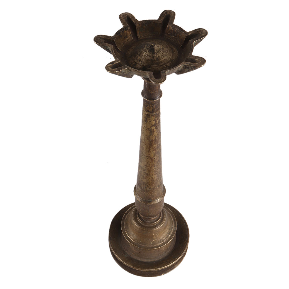 Brass 7 Wick Kuthu Vilakku Oil Lamp In Antique Finish