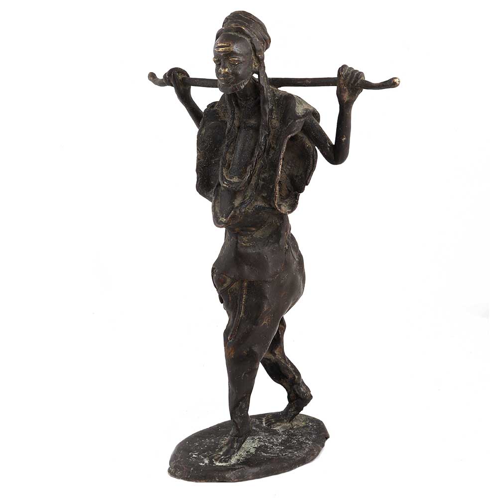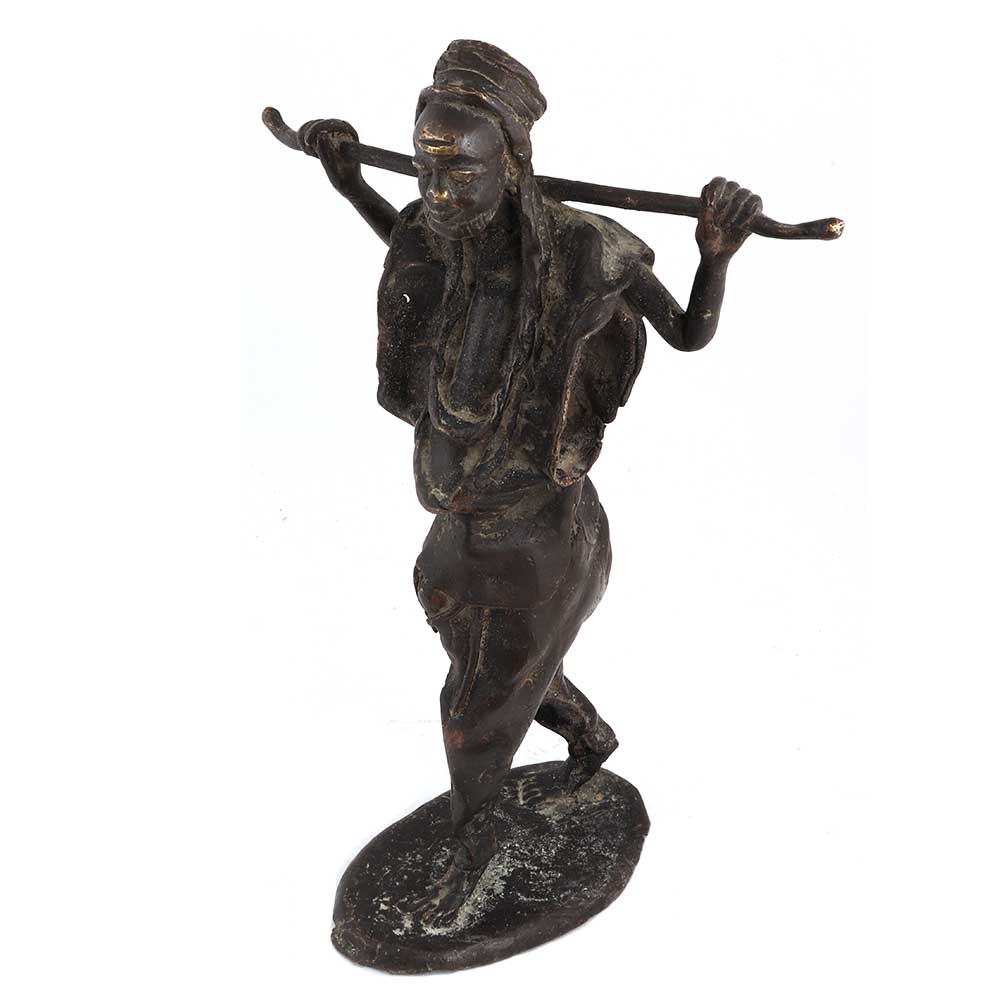 Brass African Farmer Statue standing with stick made wearing old robes and turban. It is made by the expert craftsmen on the tribal community. Wedding gift, Christmas gift, Diwali gift, new ear gift home decoration, table display, gift for your family and friends.