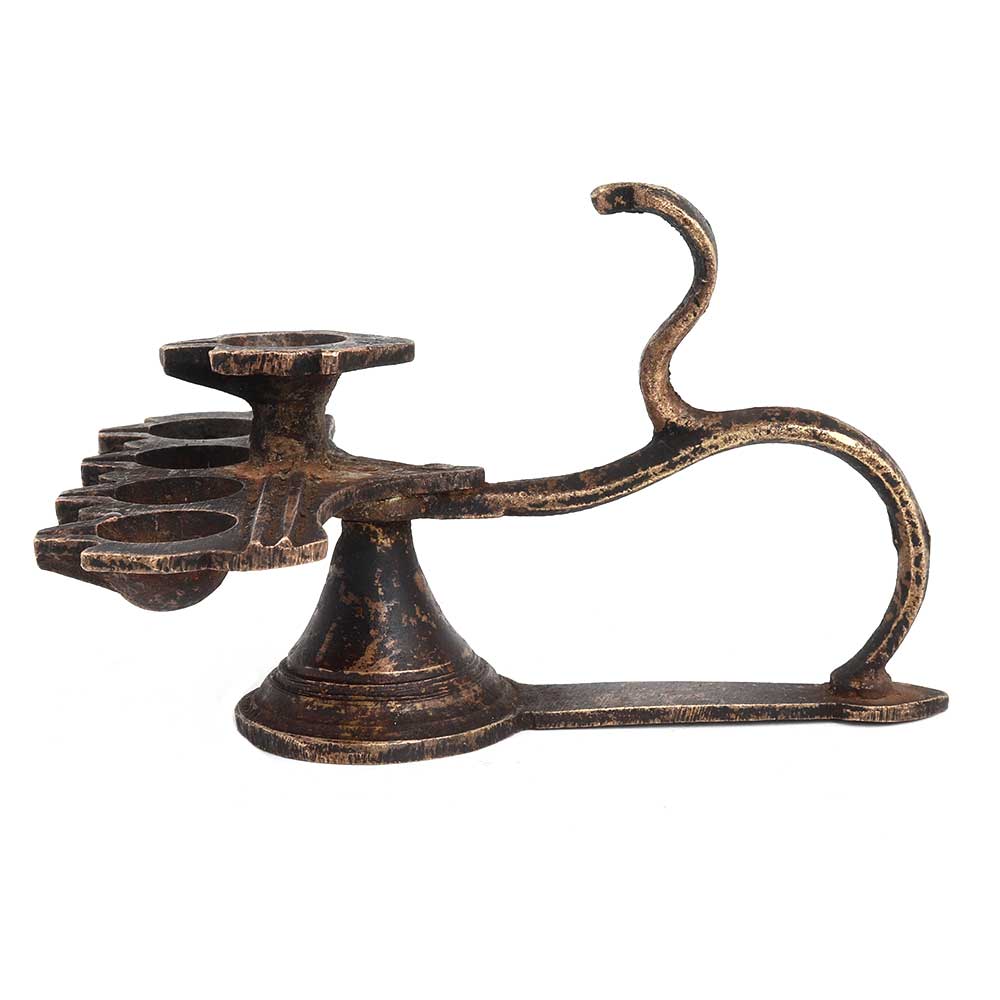 Brass Arti Worship Diya With Cobra Snake handle .Diwali gift, new year gift, stage decoration, worship lamp for temples and other places of worship . Perfect gift for your near and dear ones.