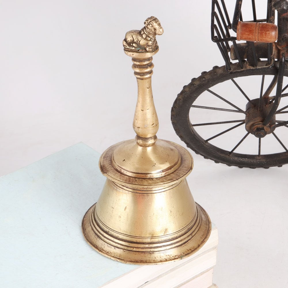 • Brass Bell Carved with Lord Nandi on Handle