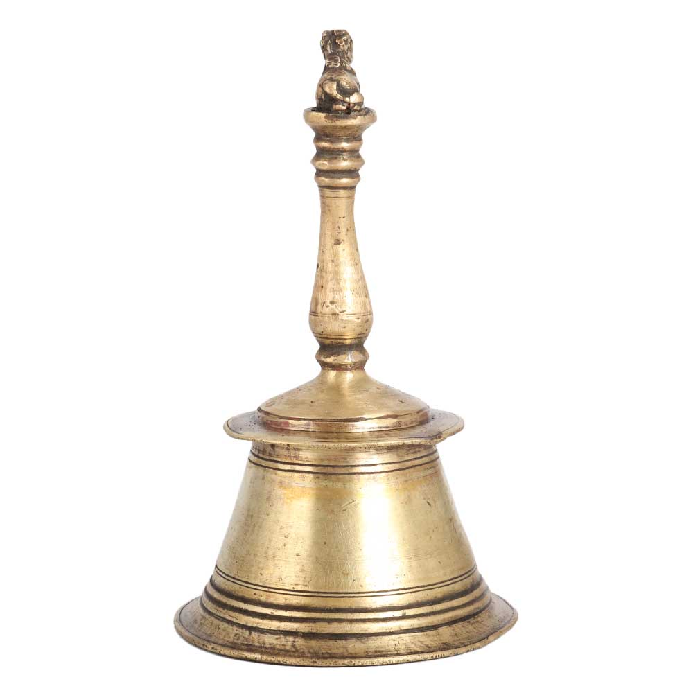 Buy a brass bell online from our website, which is made of high quality brass, making it a perfect piece for decoration and vintage collection. Being handcrafted by highly skilled and experienced Indian artisans, it leaves a long lasting impression in decoration. This brass temple bell is carved with Lord Nandi on the top, making it an auspicious bell to be used in rituals, havans and aarti. Lord Nandi is the bull Vahana of the Hindu God Lord Shiva and is worshipped in many Indian temples. Display this vintage bell in a museum, exhibition or collection of ancient art. An auspicious gift for a friend, family or relative on a special or festive occasion.