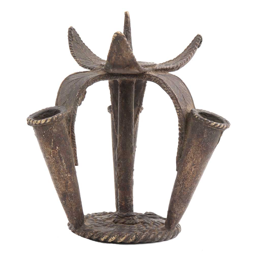 Brass Big Tribal Flower Incense Holder On Stand