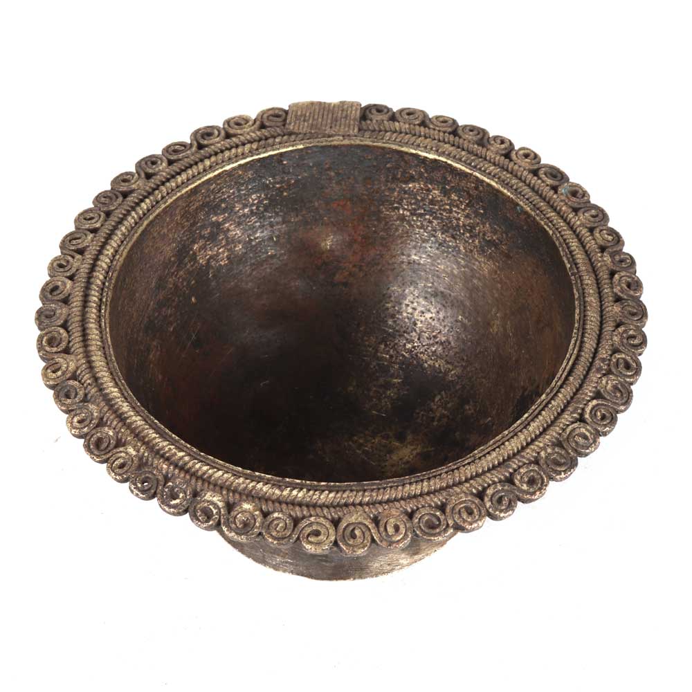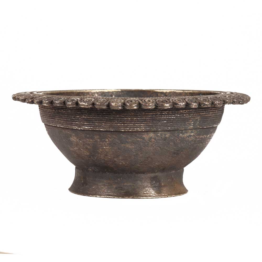• Brass Bowl On Pedestal And Carved Design On Rim