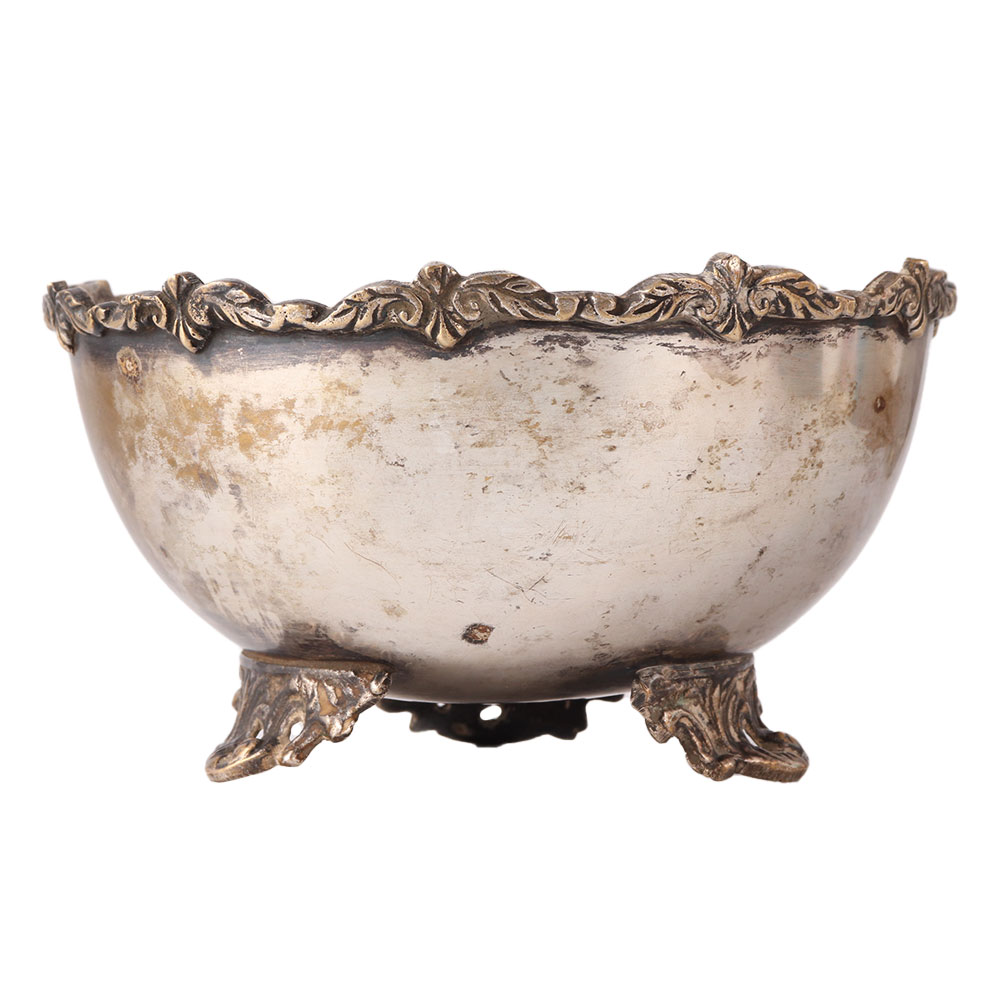 Brass Bowl With Legs In Nickel Finish