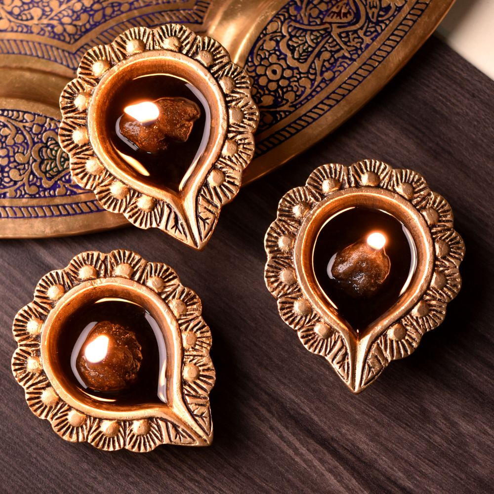 Celebrate the festival of lights with this Brass Bud Shaped Decorative Border Diya, a lamp that blends sacred symbolism with artistic elegance. Handcrafted from solid brass with a polished golden finish, it features a flower-bud design surrounded by a decorative border, symbolizing purity, prosperity, and devotion. Compact yet radiant, this diya is perfect for Diwali décor, mandir rituals, and spiritual gifting.